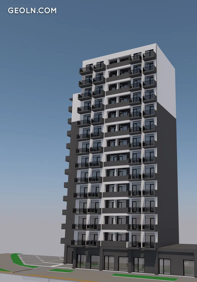 第比利斯Varketili 3上的住宅区由两栋建筑组成。这些是14层的现代中层建筑。它们具有坚固的整体框架,并以现代风格进行设计。外墙覆盖着白色和灰色的时尚组合,看起来清新动感。