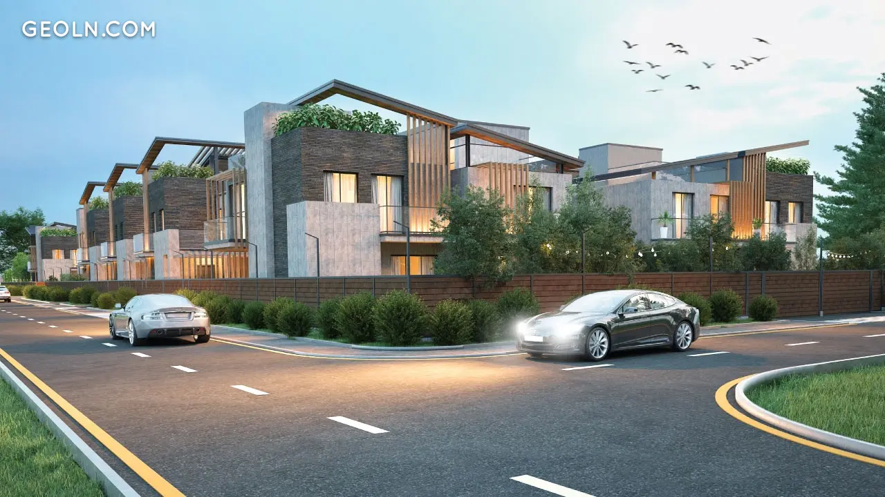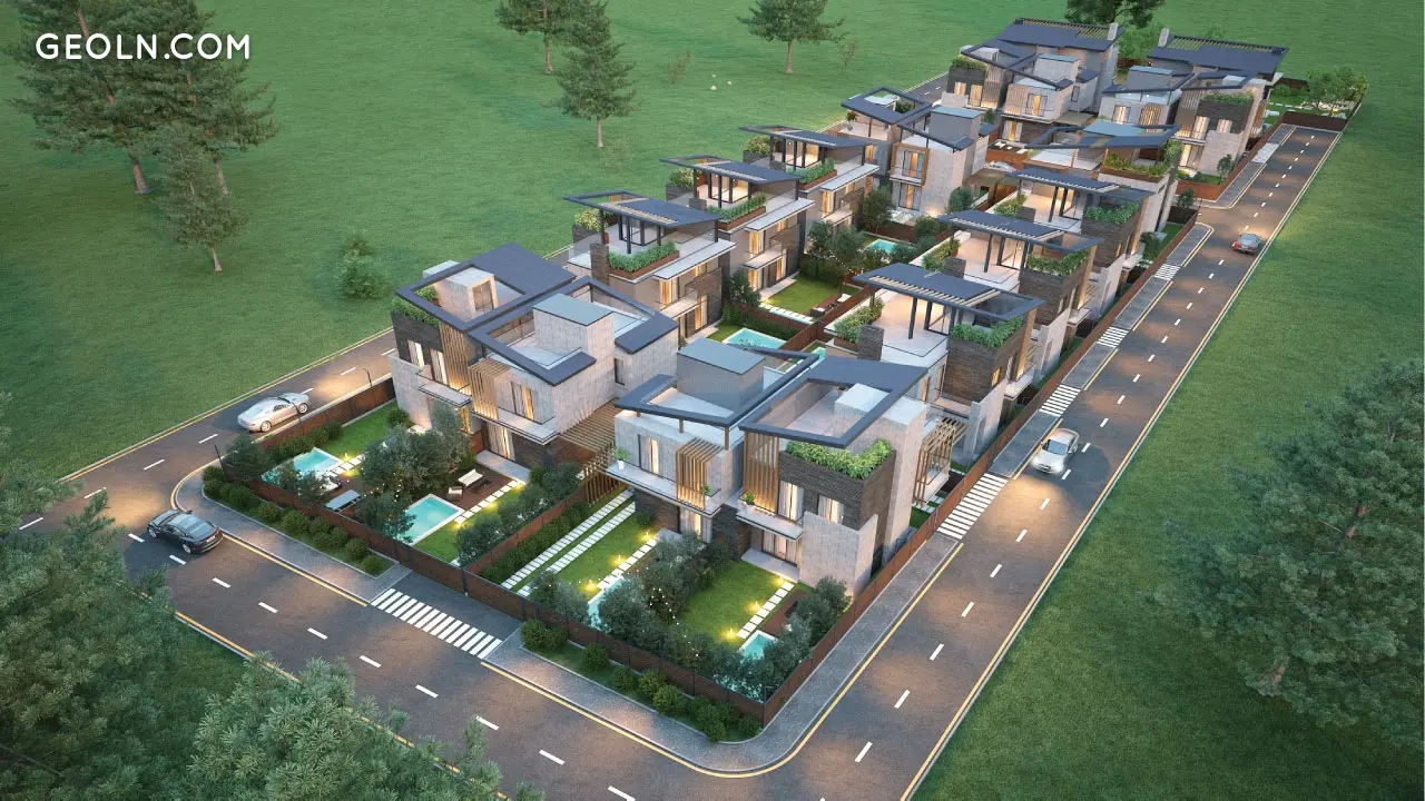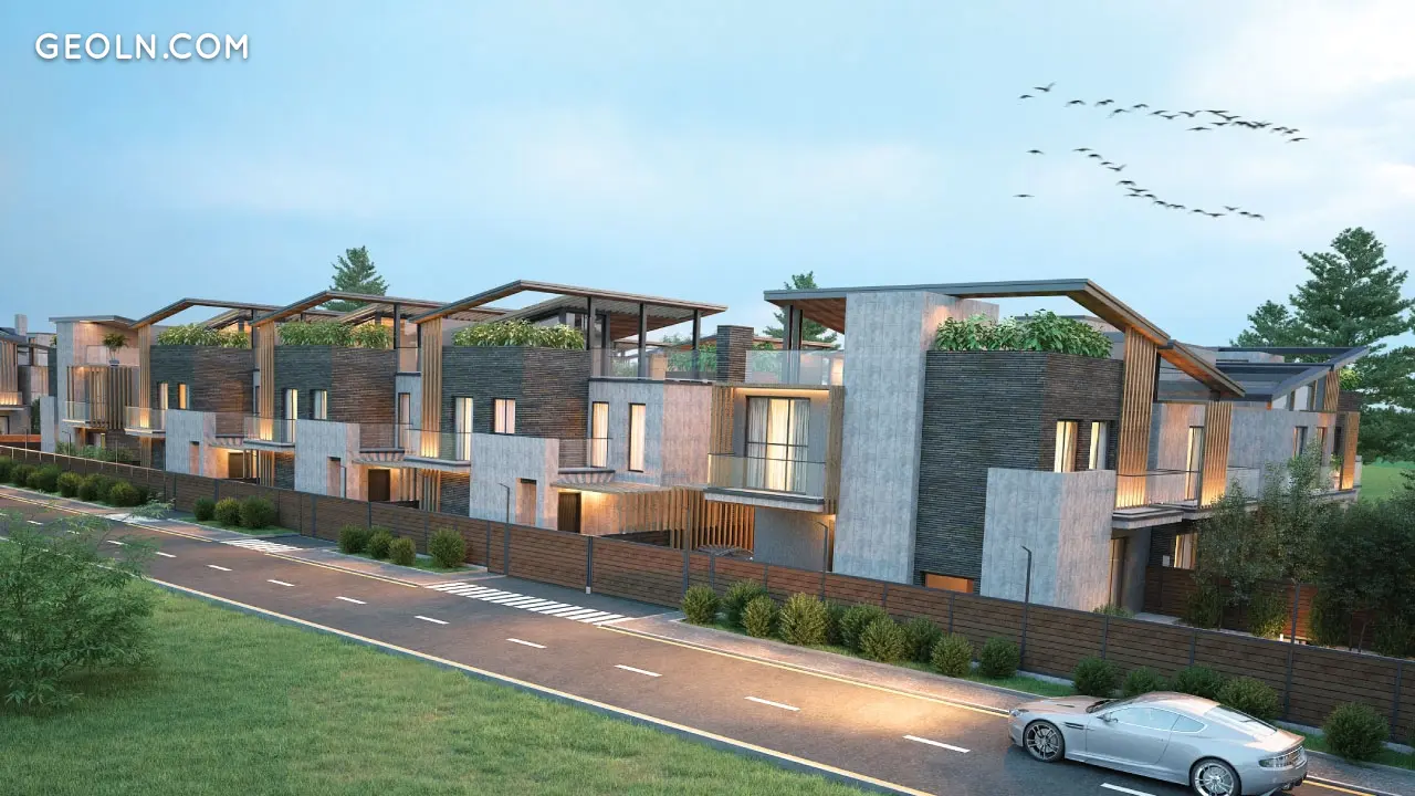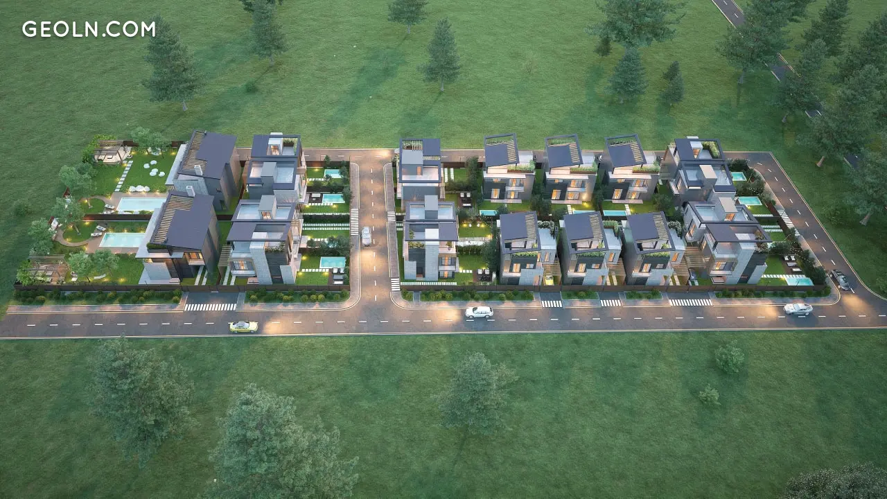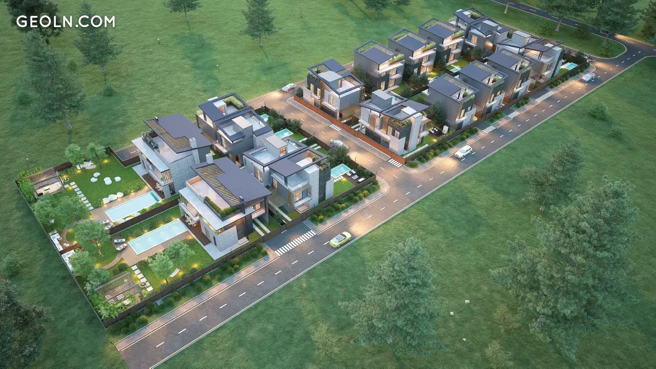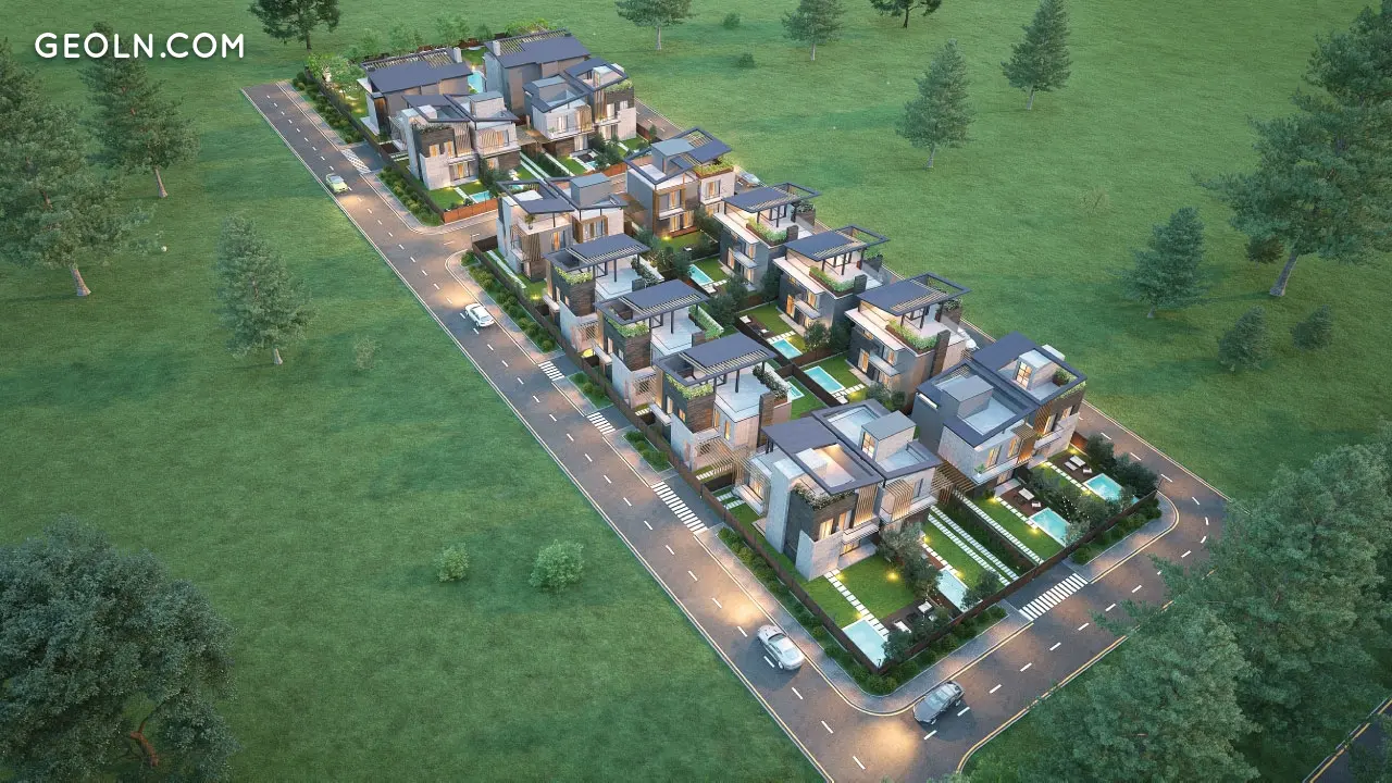 高级别墅 - 带有独立院子、露台和游泳池的独立房屋,居住空间从 266.5 平方米起。该项目设想2间房屋