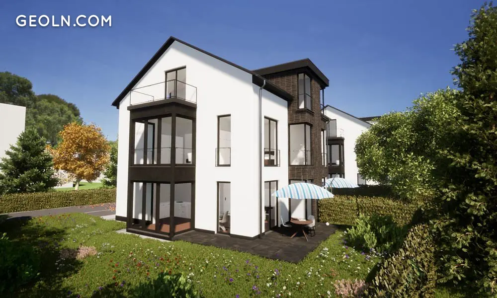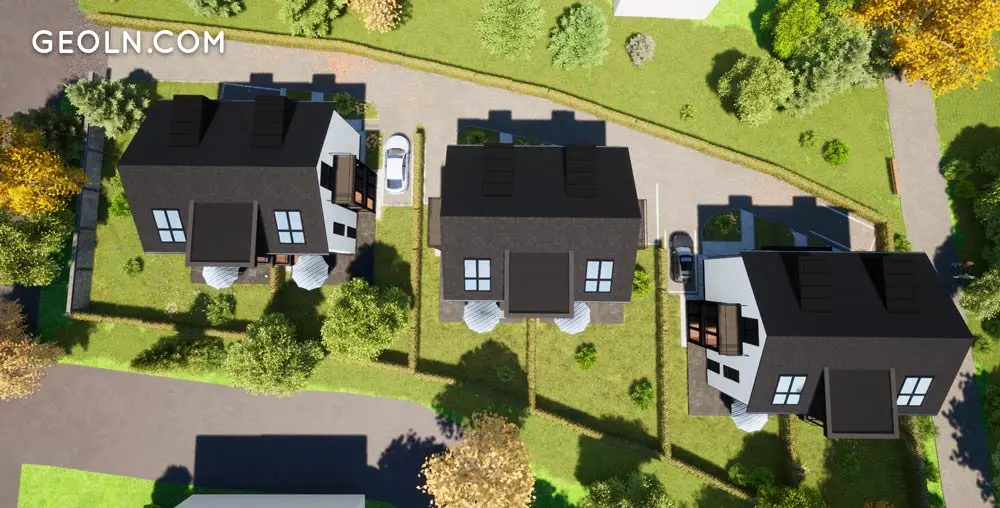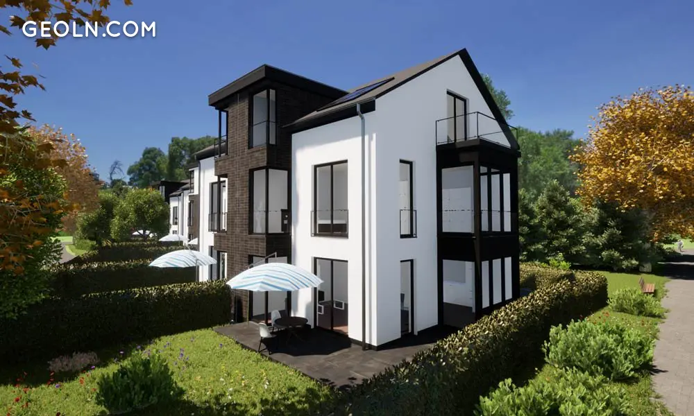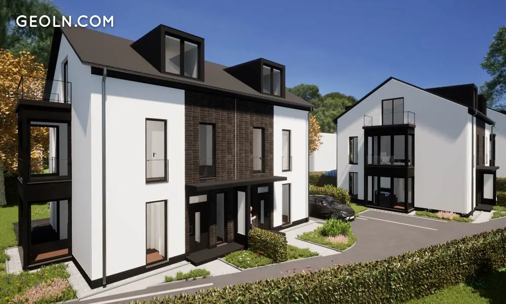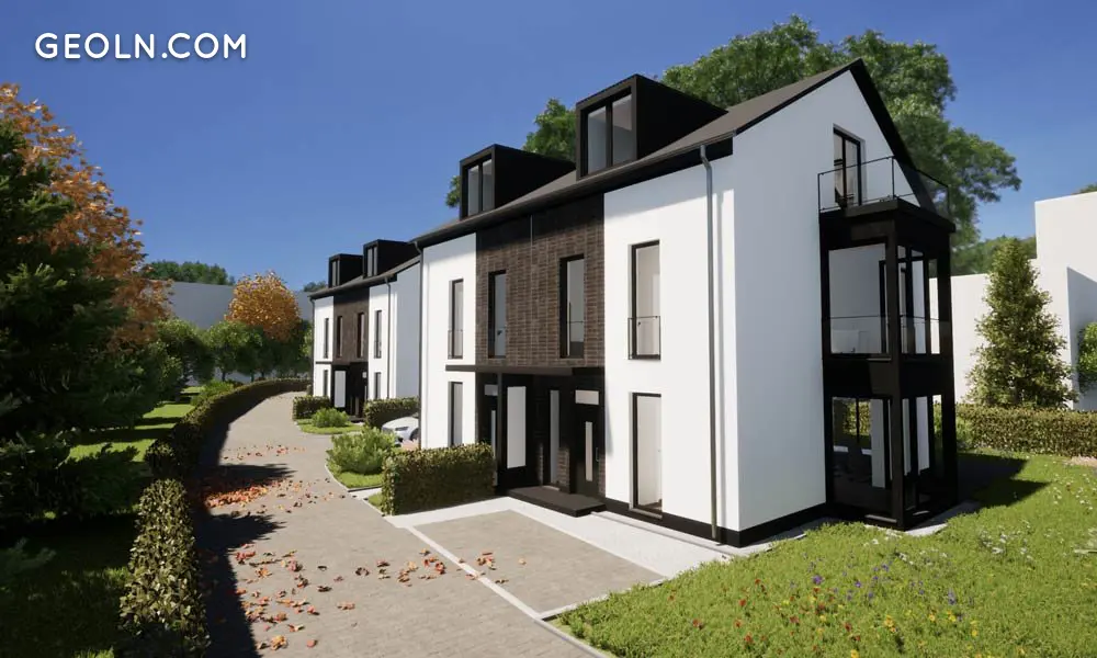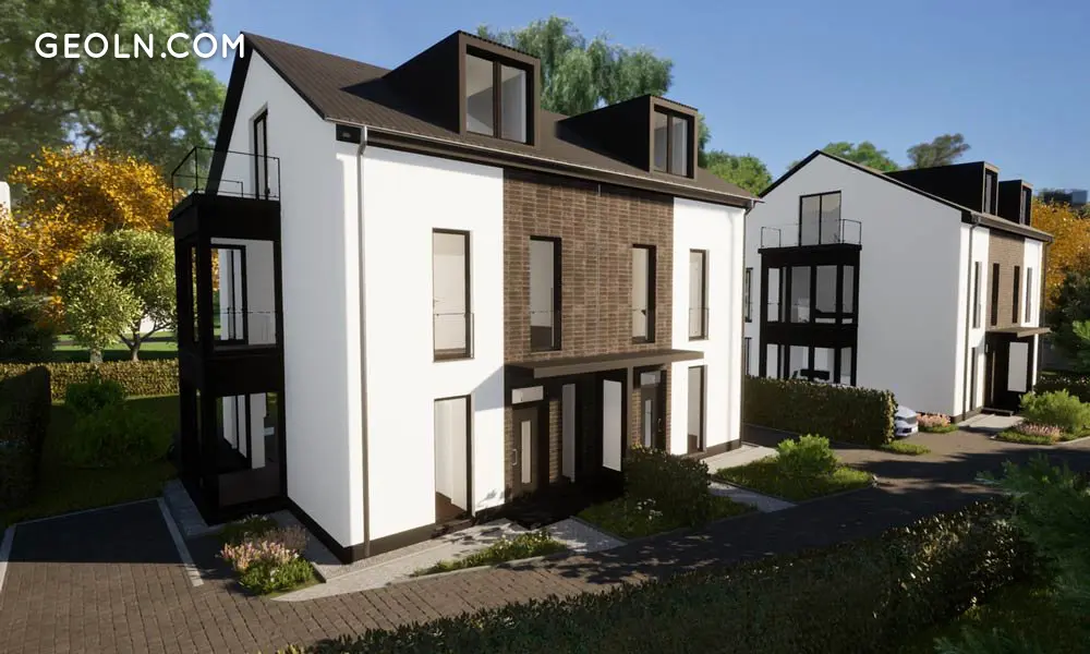 6 套半独立式住宅,每套都有大约 160 平方米的居住空间和自己的停车位,正在一块天然的土地上建造。 为整个家庭提供充足的空间。