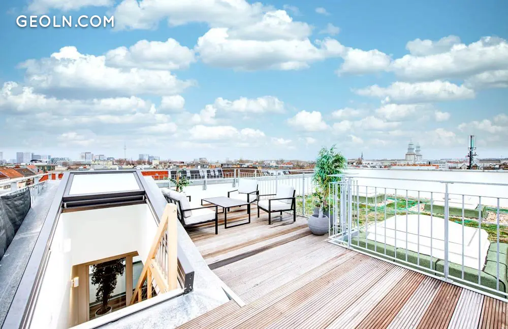 屋顶露台是一个引人注目的商标! 每间顶层公寓都可以从客厅直接进入私人屋顶露台,让住户在 Boxhagener Kiez 老式屋顶上方有一个包厢座位。 虽然街区的年轻生活在下面的街道上嗡嗡作响,但您的屋顶露台是度过漫长夏夜和烧烤的理想场所。