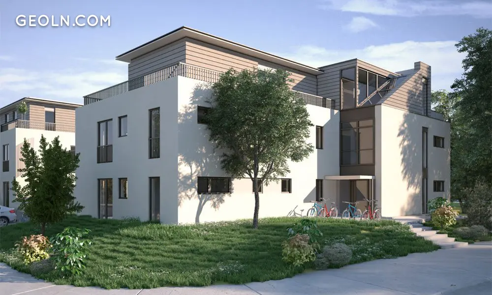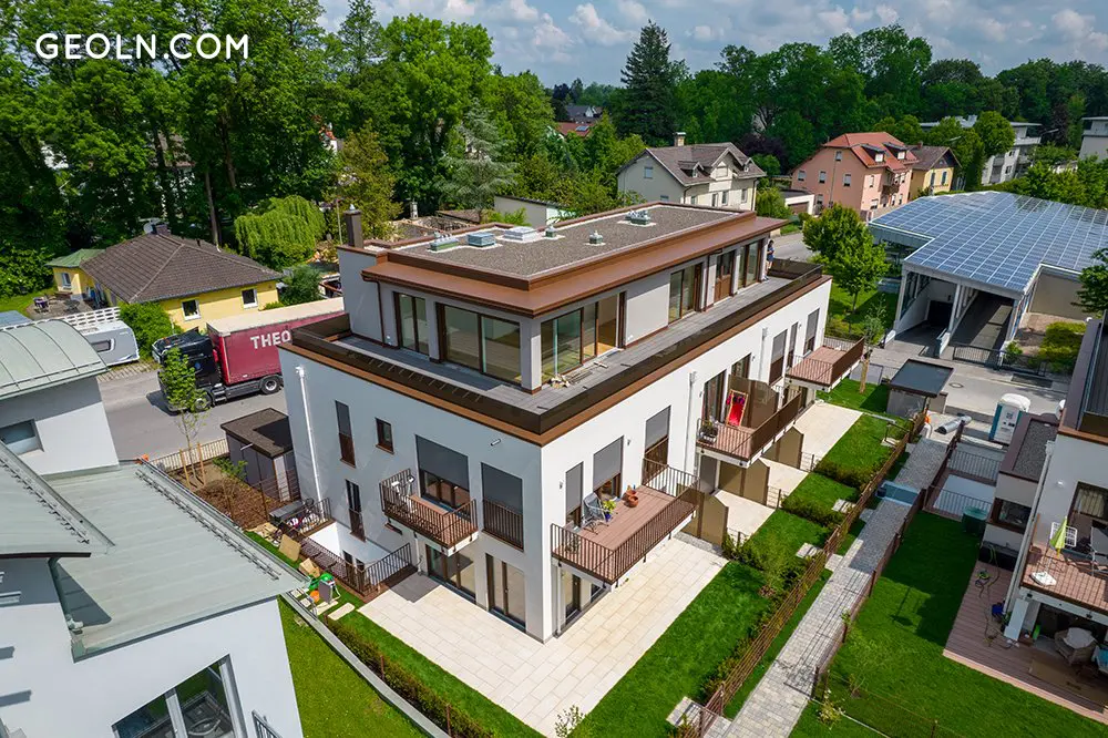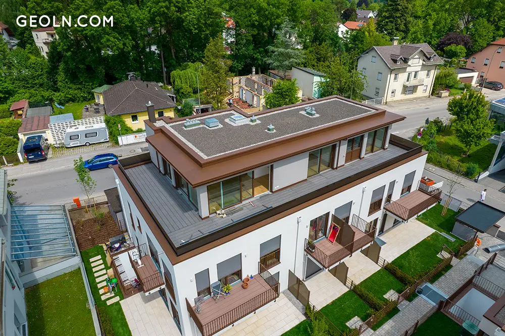 位于慕尼黑西郊的花园城市格雷费尔芬 (Gräfelfing) 正在建造两栋现代公寓楼,共有 15 套公寓和一个地下停车场。