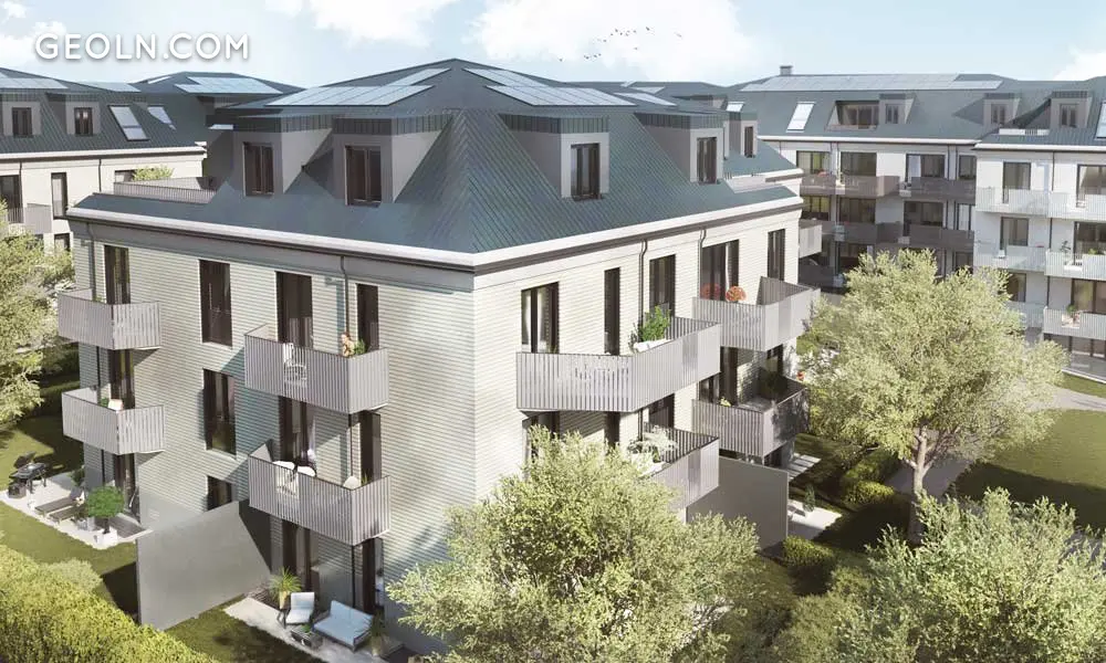 这座建筑群与街道平行,辅以同样高品质的朝南公寓楼,在约 30 平方米的面积上创造了一个现代化的城市街区。 8.700 平方米。 这些阳光明媚的城市别墅受到 Chiemseestrasse 沿线新住宅开发项目的保护。