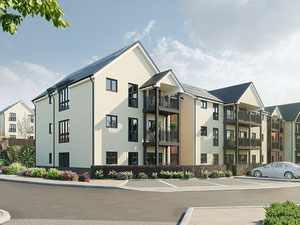 一楼的公寓的正面和背面均配有凉棚,而在一楼的背面则设有一个共用游泳池,并设有一个供日光躺椅使用的区域。