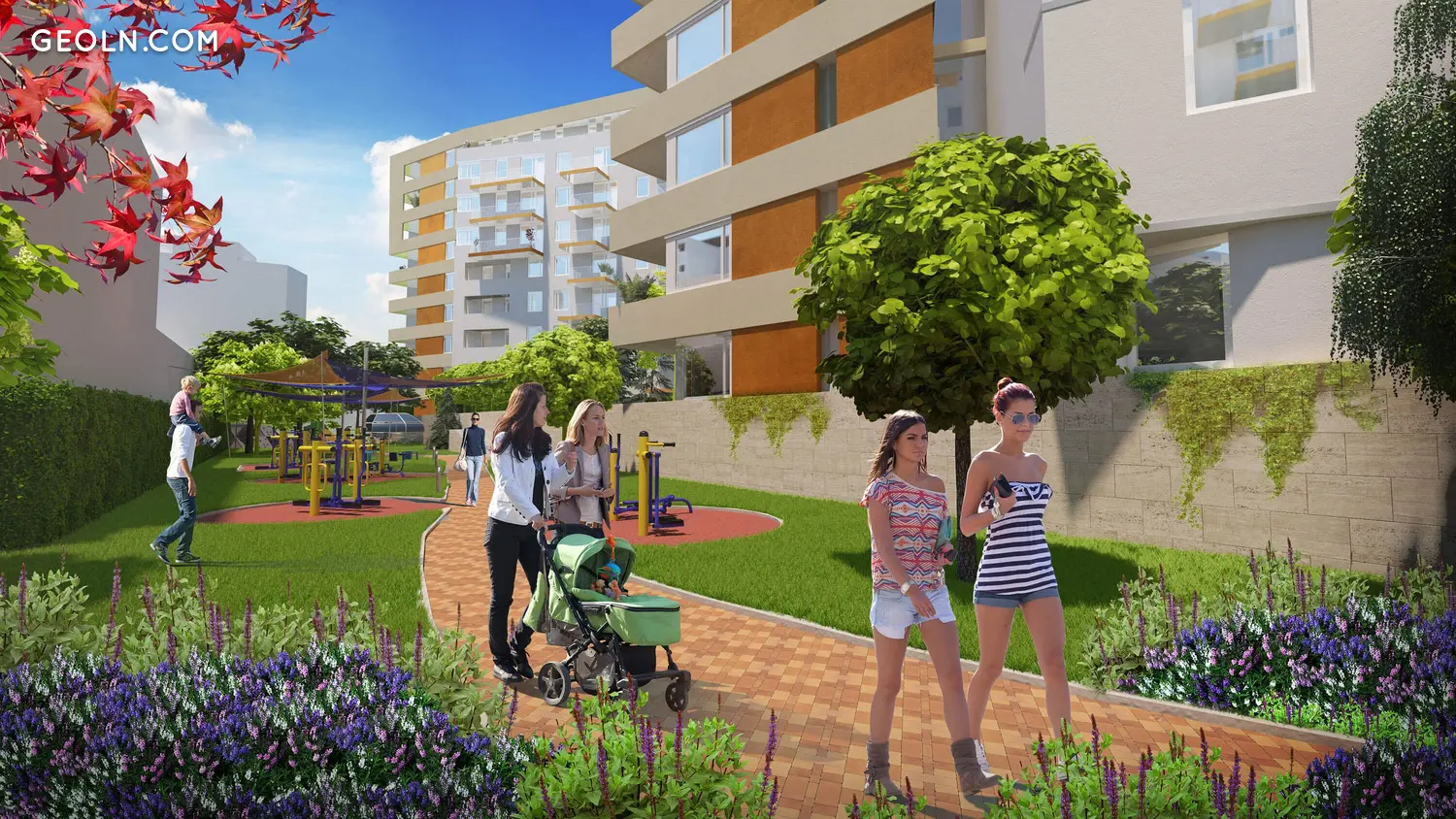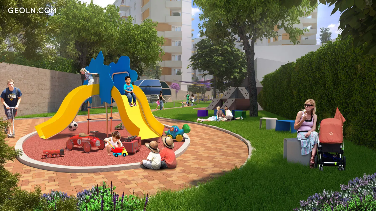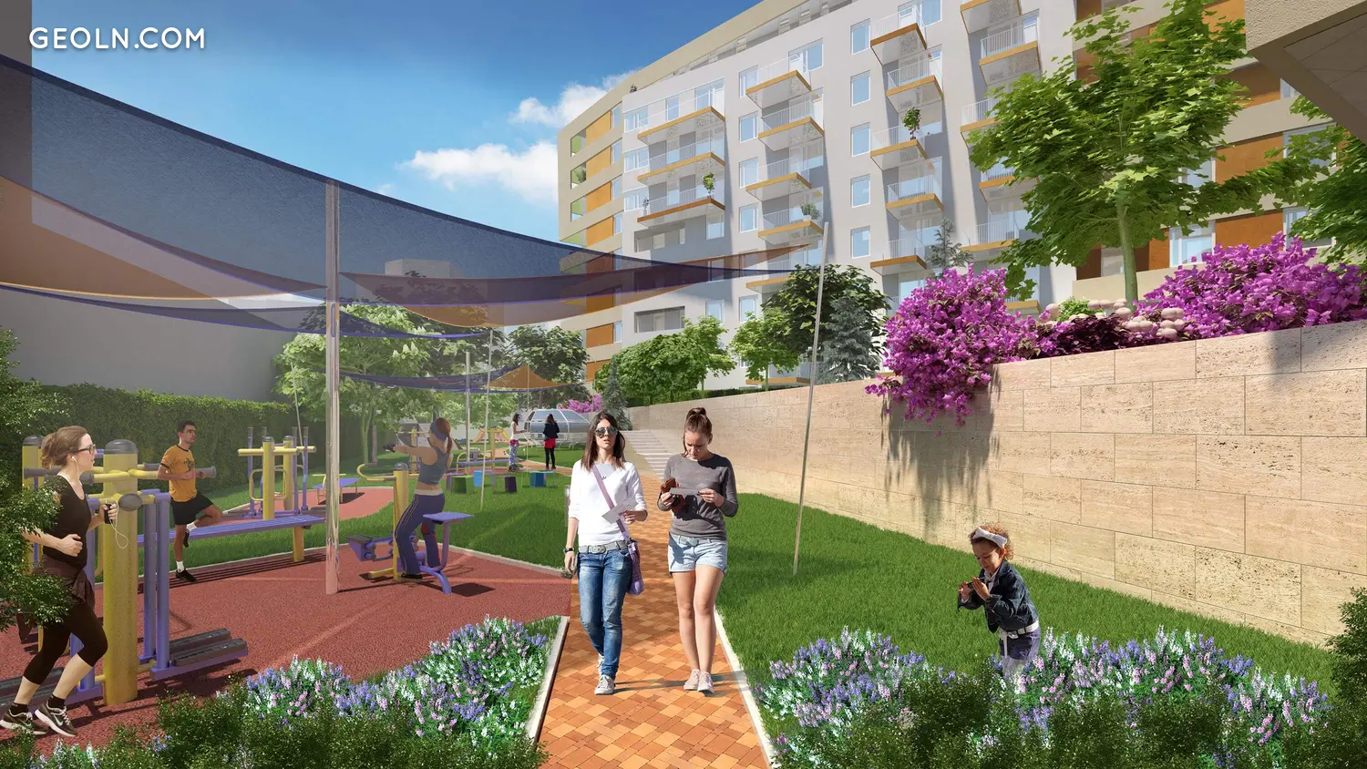 购买 Young City 住宅不仅为您提供公寓,还为您提供精心设计的社交生活空间。 Young City 的底层提供设备齐全的多功能公共空间(设有共用办公室、儿童游乐区和游戏俱乐部)。在带顶棚的儿童游乐区旁边,您可以找到一个带攀岩墙和儿童自行车区的景观公共花园区。距离最先进的游乐场仅有几分钟的步行路程,而玛格丽特岛和城市公园也在附近。