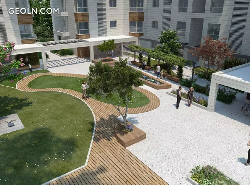 一个由4栋建筑物组成的建筑群,共有8层,中间有一个私人庭院,仅供该建筑物的居住者使用。