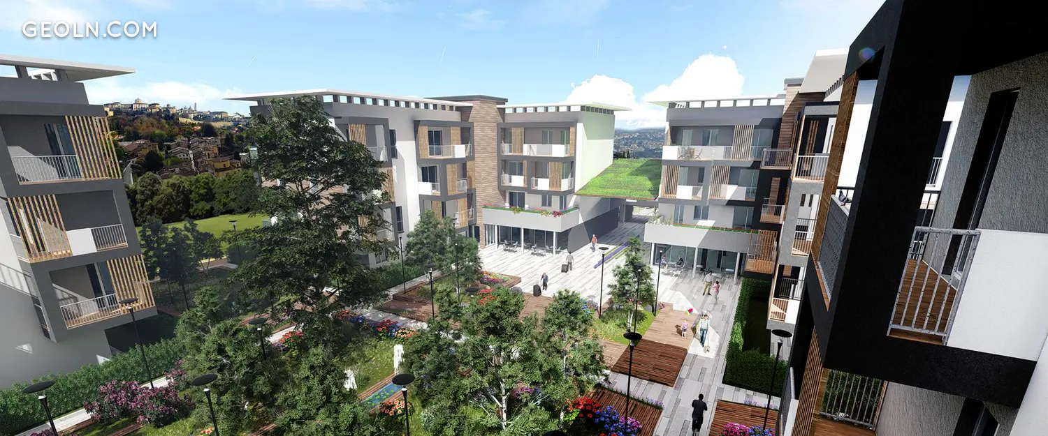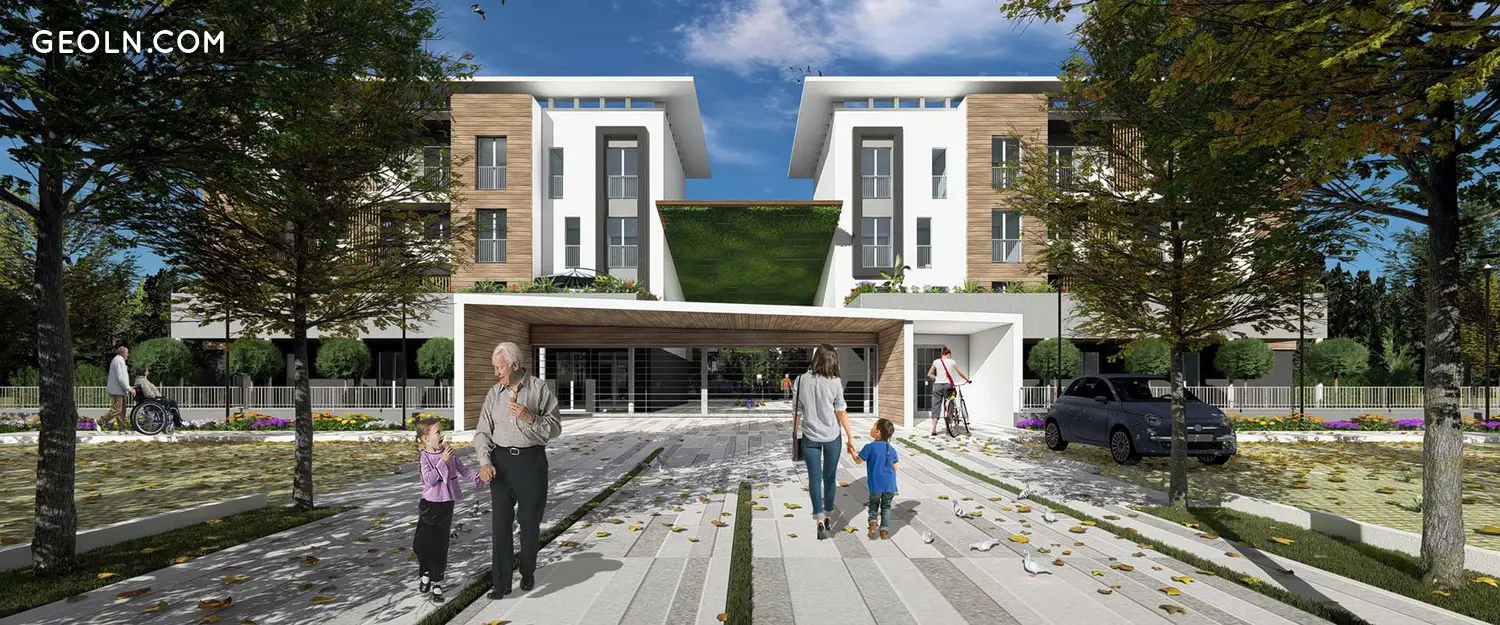 540平方米的有盖公共区域:起居室,共用厨房,儿童游乐区,洗衣/熨衣室,工具室,团结采购押金;合作,医疗诊所,可持续发展之家。