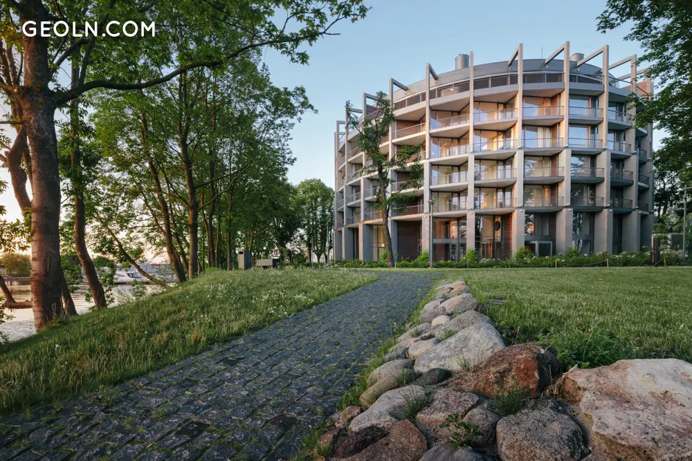 Klīversala 的第一个住宅已经完工——River Breeze Residence 是这座城市剪影的真正地标之一,位于道加瓦河岸边。 River Breeze Residence 以其独特的外观和无可挑剔的品质而闻名于世。住宅的圆形可以捕捉尽可能多的阳光,并为里加老城及其塔楼和道加瓦河提供壮观的景色。
