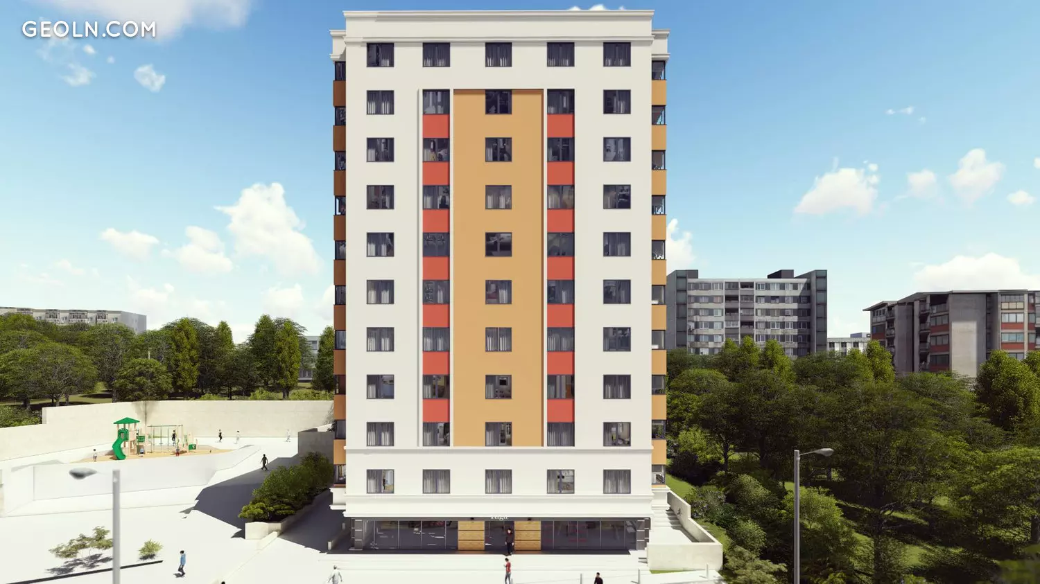 兩室公寓設有獨立的浴室,面積為53.9平方米。米,57.06平方米米和66.88平方米。米