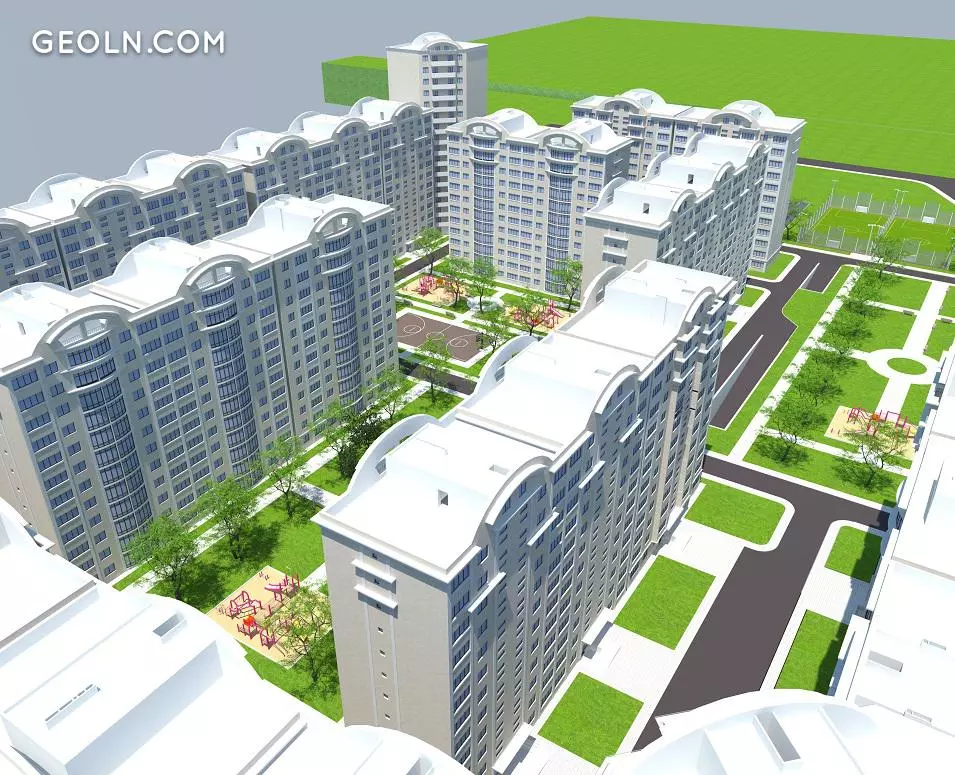 住宅區“ Eco摩爾多瓦”由22棟住宅樓組成,樓高分別為10、12和18層。房屋的牆壁是用天然石灰石製成的。另外,已經對其隔熱和隔音進行了工作。特別注意增加地震穩定性。