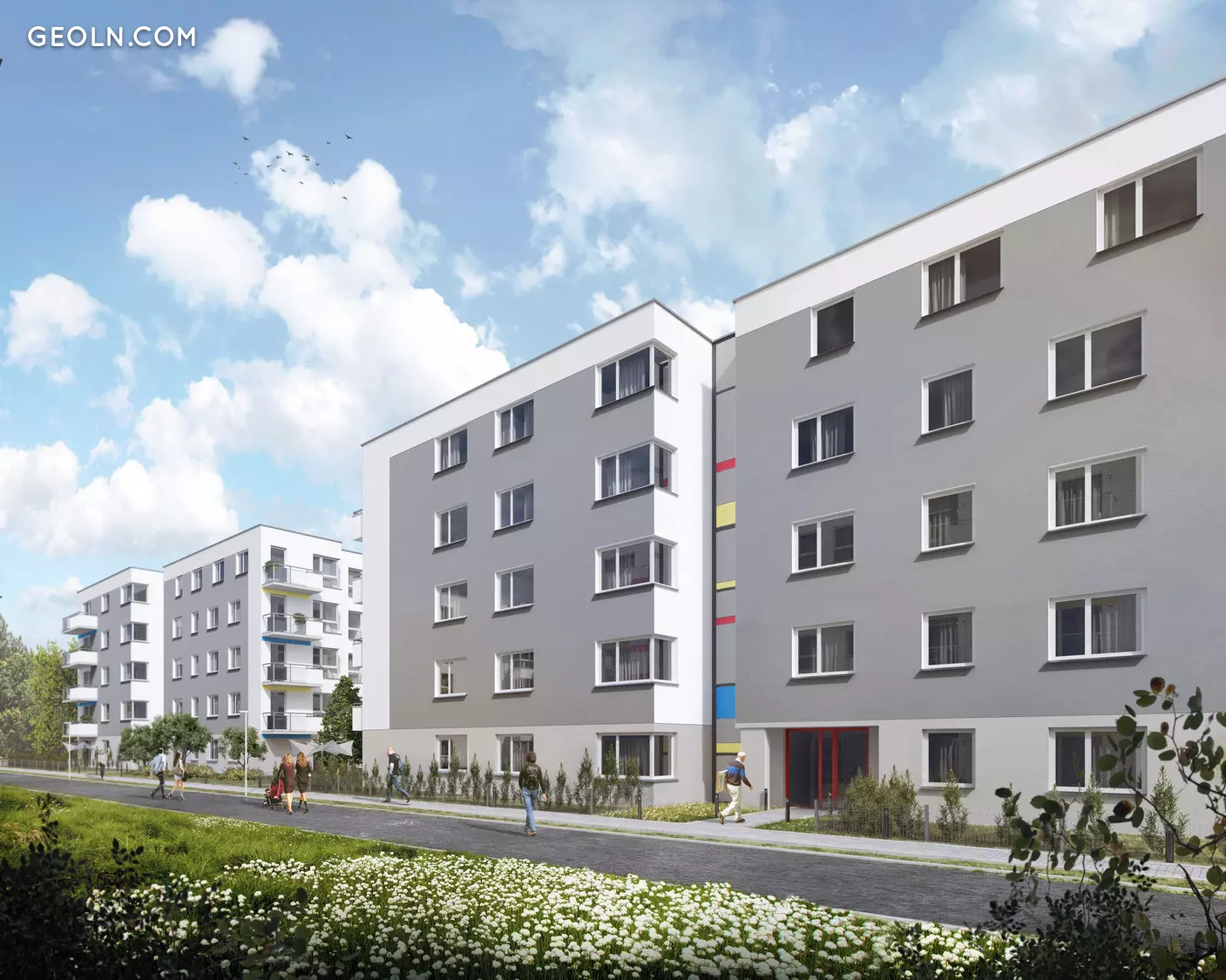 在庄园的围栏地区,有人行道,内部道路,众多的植物布置,小型建筑元素,公共休闲区,儿童游乐场,外部和内部停车位以及租户存储空间。这项投资已适应残疾人的需求。