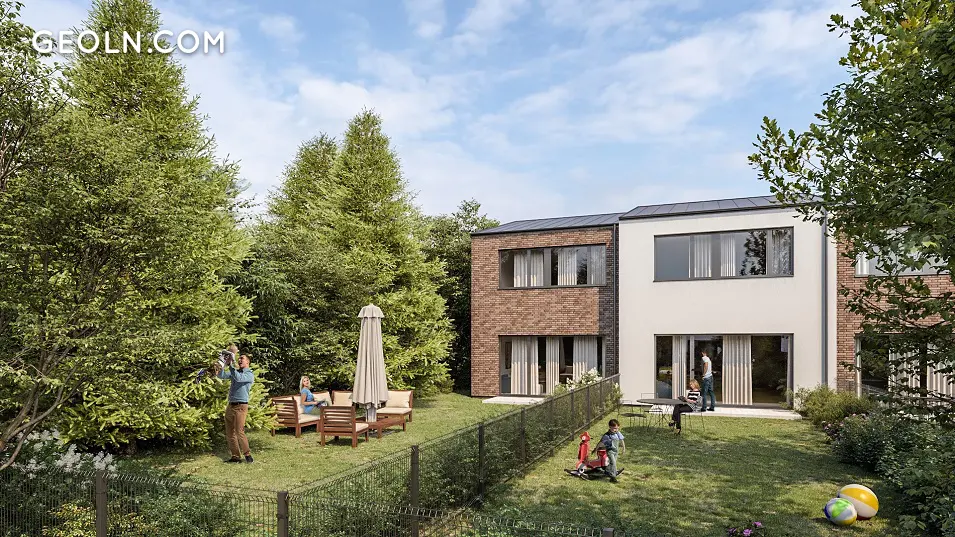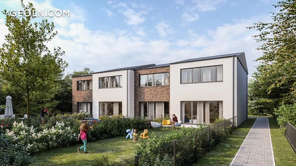 亲密的家庭经营式建筑,现代风格,郁郁葱葱的绿色之中,设有城市别墅和8间带大花园和停车位的复式公寓。