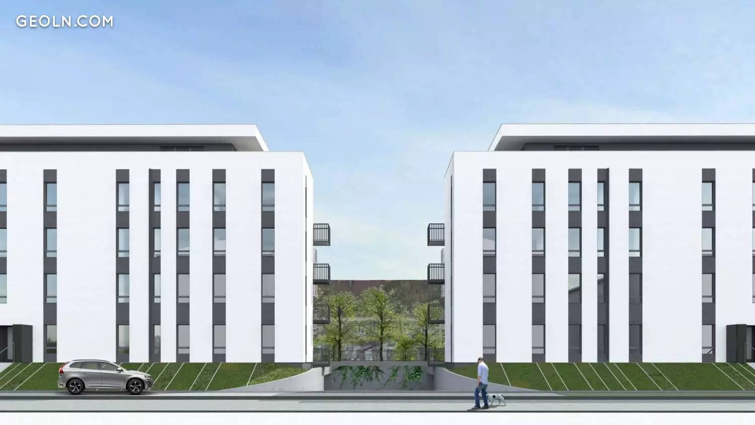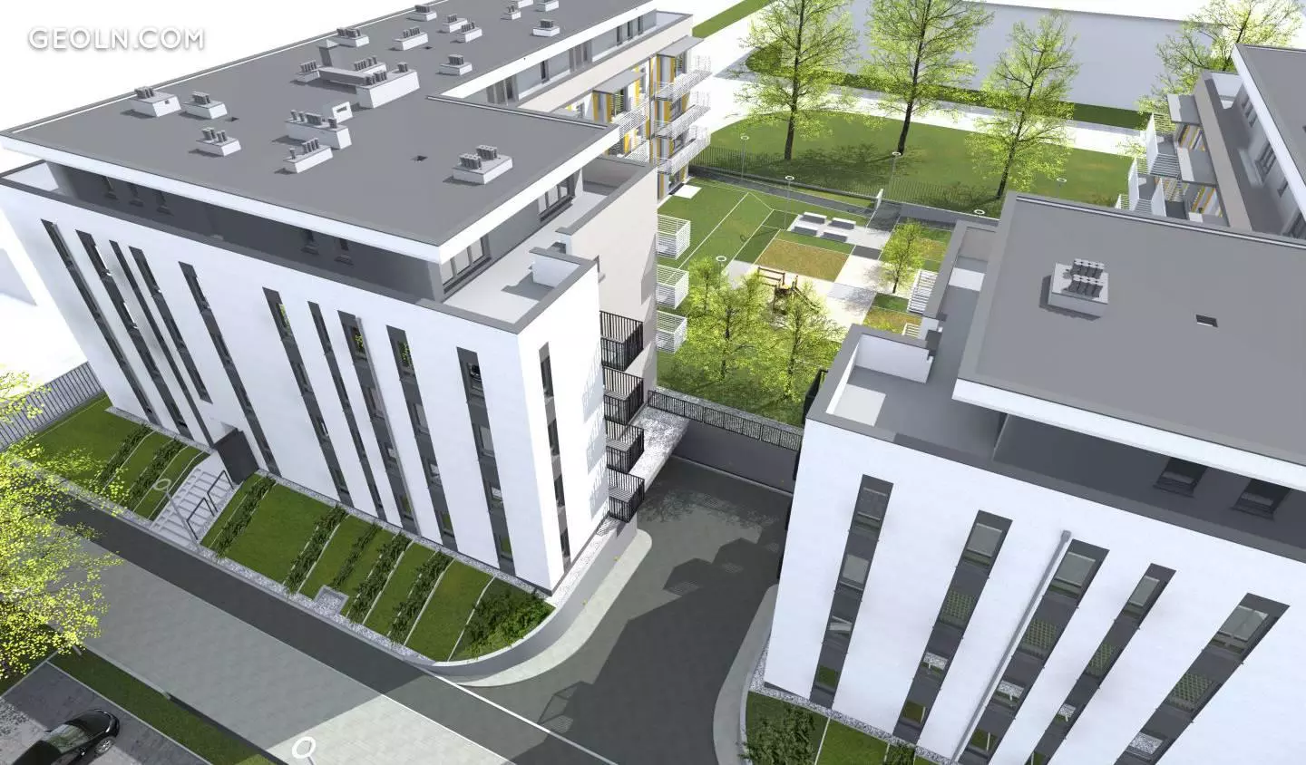 Pogodno公寓由Mellon Architekci建筑工作室设计。庄园由两栋四层楼高的中层建筑组成,均采用现代风格。外立面是从内部庭院的侧面以单色制成的-温暖的色彩,带有不规则的大窗户。建筑物的地下部分有一个地下车库。