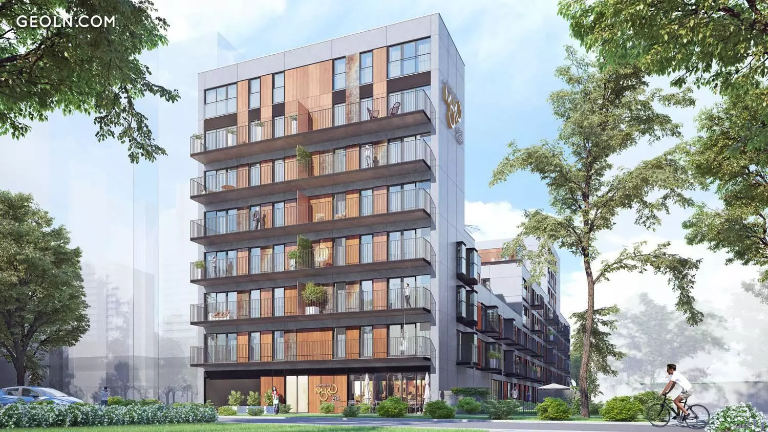 Moko Concept Apartments大楼的建筑高度不一,达到了第七层,以现代风格建造,色彩柔和,带有木色元素和简约的建筑风格。金属阳台栏杆是立面建筑布局的一部分。