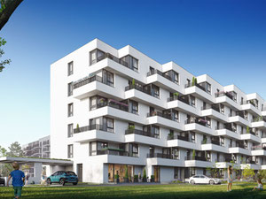 该投资包括两栋建筑-一栋六层的建筑和一栋七层和八层的不同高度的建筑。积木由简约的主体制成,并具有简约的现代风格。外墙使用了木质装饰板和灰褐色,白色的灰泥。建筑布局丰富了许多玻璃元素。建筑物有天然木材制成的高大窗户。一楼有用于商业和服务场所的空间。