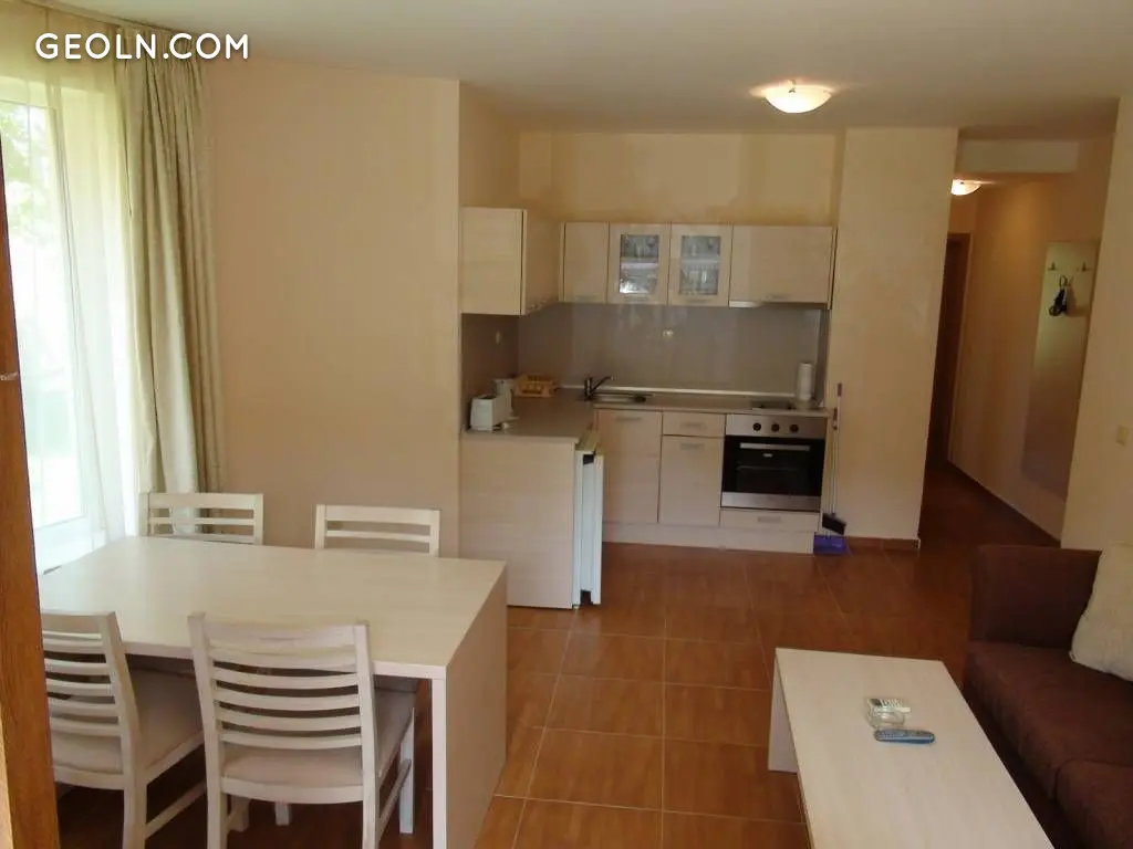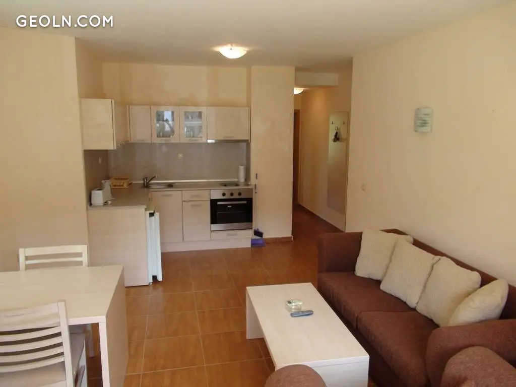 Двухкомнатная квартира в рассрочкуКвартира состоит из двух комнат: зал, совмещеннй с кухнным блоком, оборудован раздижной кроватью. Кухня полностью снабженная електроприборами обеденным столом; зал обставлен раздижном диваном, телевизором. Этаж первый, с обоих балконов вид на зеленую ухоженную територию комплекса.