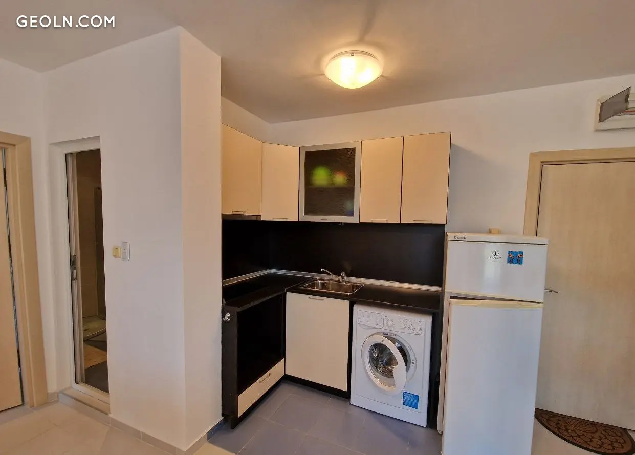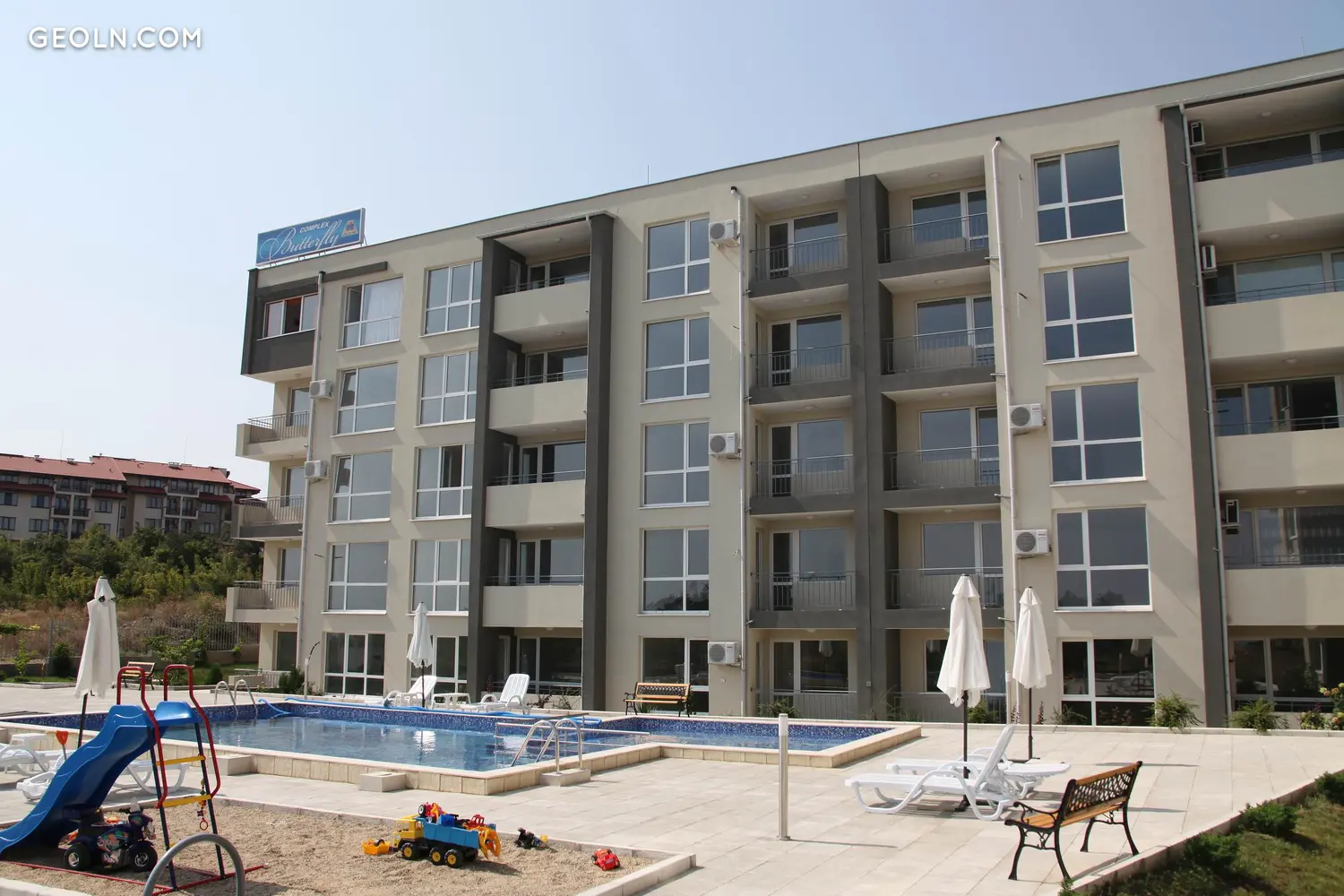 Предлагаем на продажу двухкомнатную квартиру с видом на горы в курортном комплексе „Баттерфляй“, расположенном в тихом районе курорта Святой Влас, всего в 400 метрах от пляжа и моря.