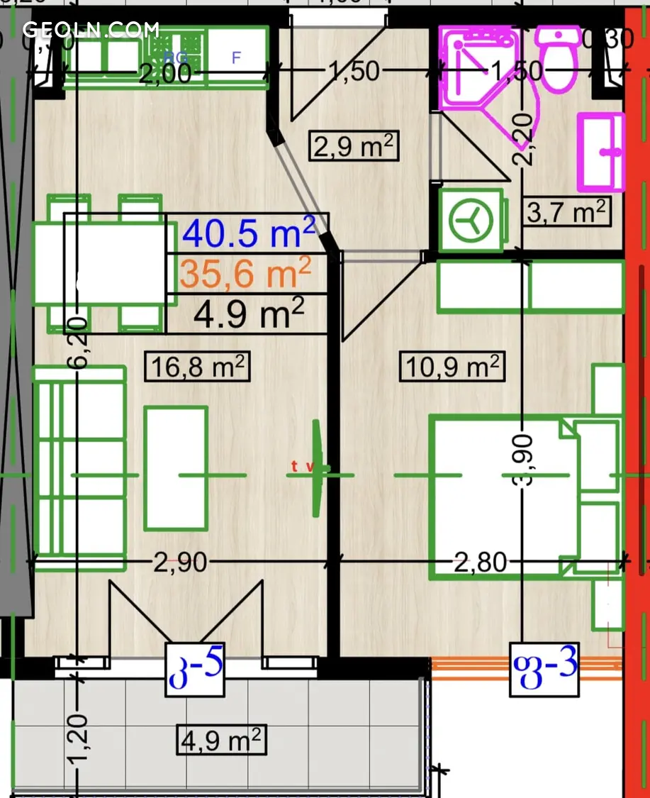 | 面积 | 40.50 м2 |