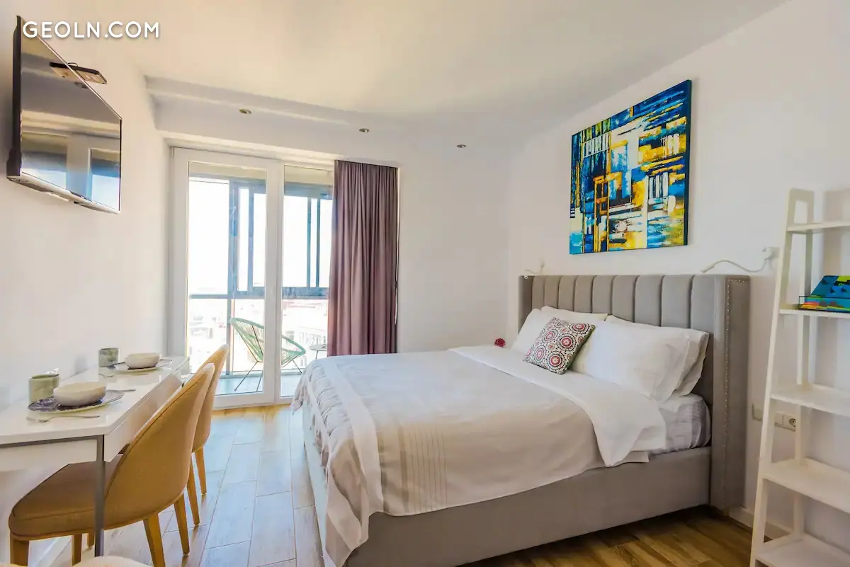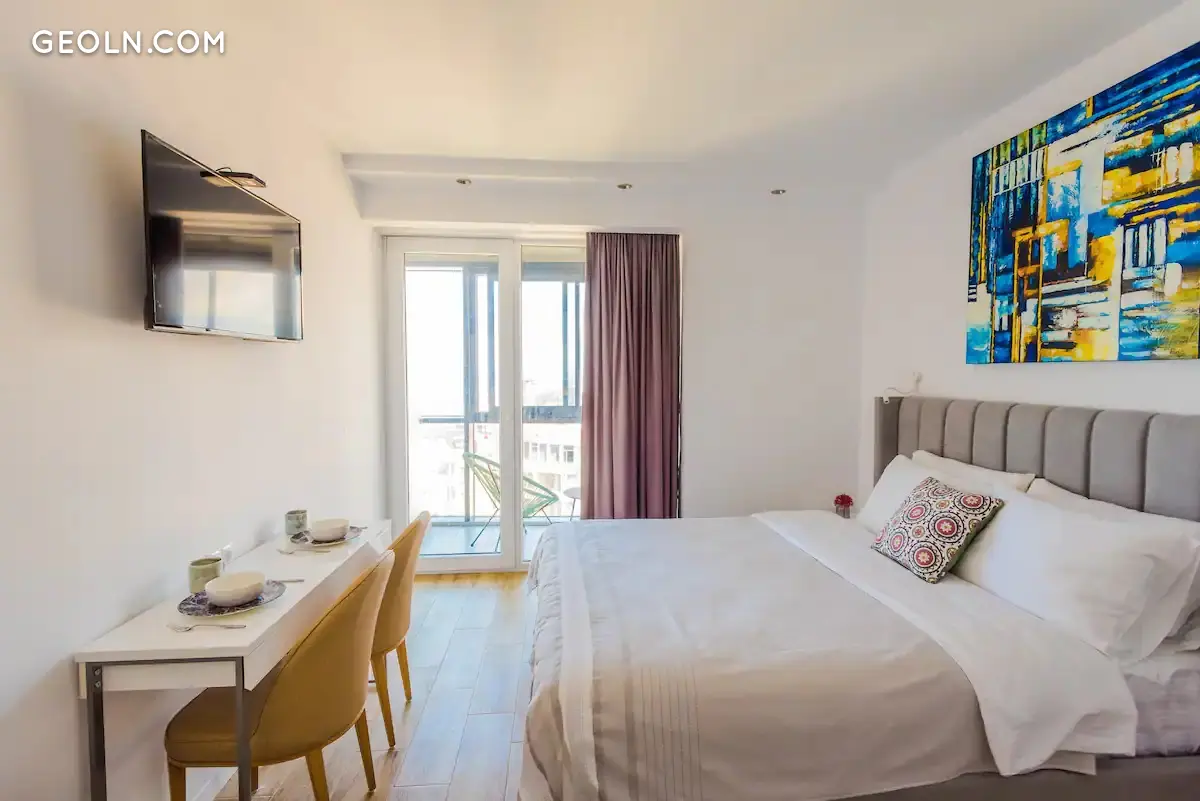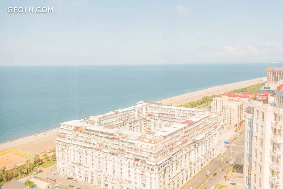 公寓的窗户可欣赏大海和山脉的全景,巴统的历史中心