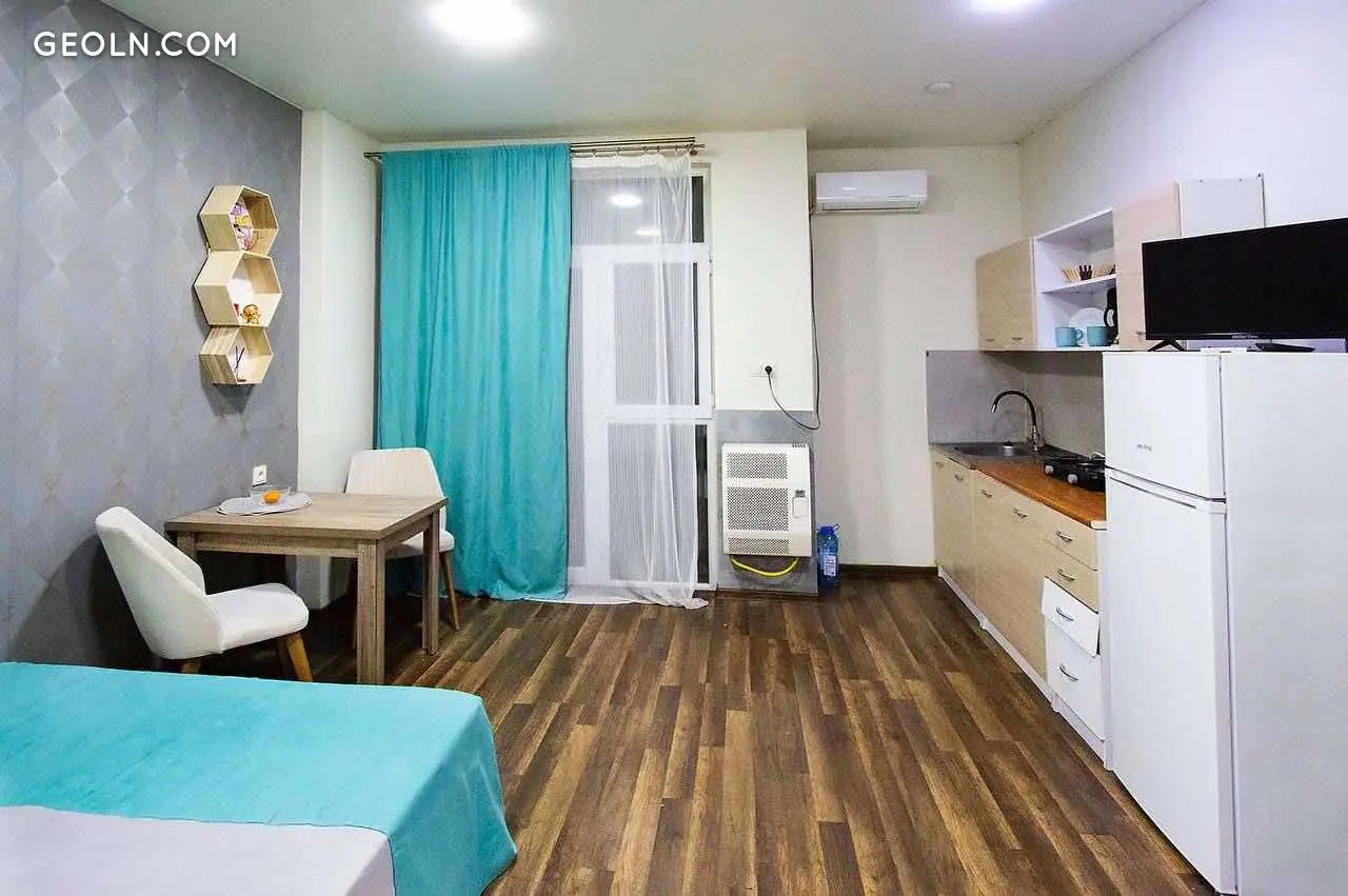Продам (м) Продается квартира-студия в жилом доме по адресу Багратиони, 28. До моря 1.9 км. Дом газифицирован; - новая газовая колонка (на гарантии); - установлена карма; - кондиционер; - газовая и электрическая плитки. -14 этаж; - 28м2 - Вид на город, море, набережную. В квартире остается мебель, техника. В доме центр китайской медицины; в шаговой доступности: продуктовый магазин; Carefur на улице Пушкина (10 минут); строительный магазин Горгия.