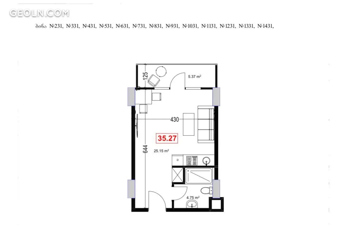 | 面积 | 35.27 м2 |