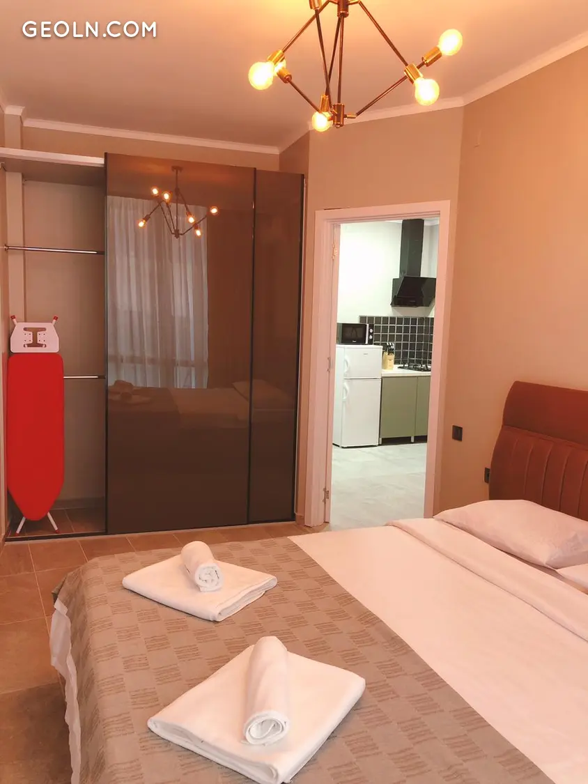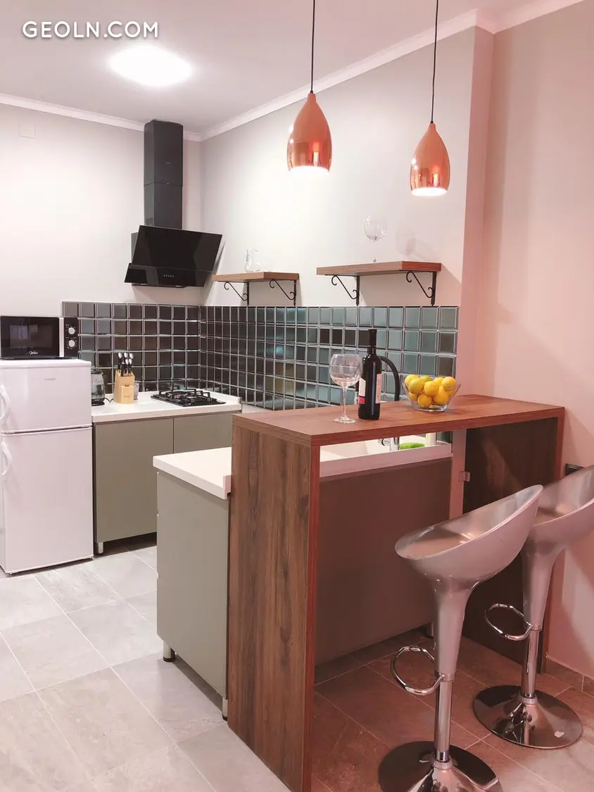 使用优质进口材料进行维修。地板 - 西班牙瓷器。家具是定做的。公寓配备齐全的家用电器(冰箱、炉灶、抽油烟机、咖啡机)。不同的照明场景。