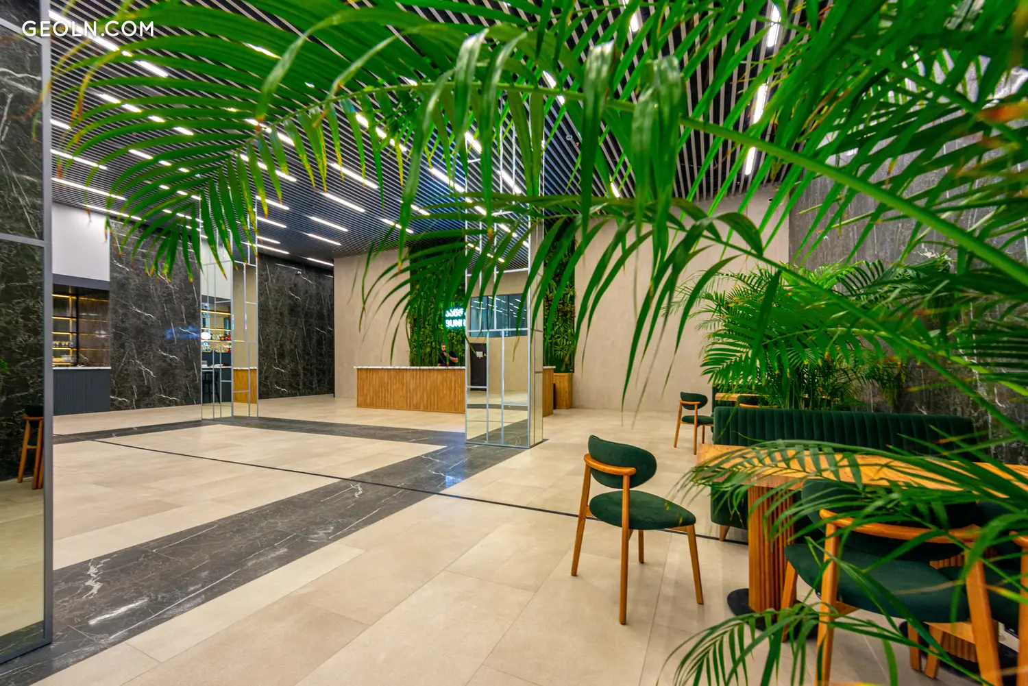 • 二楼的巨大庭院设有游乐场、运动城、餐厅、咖啡厅和景观。无车安全环保庭院