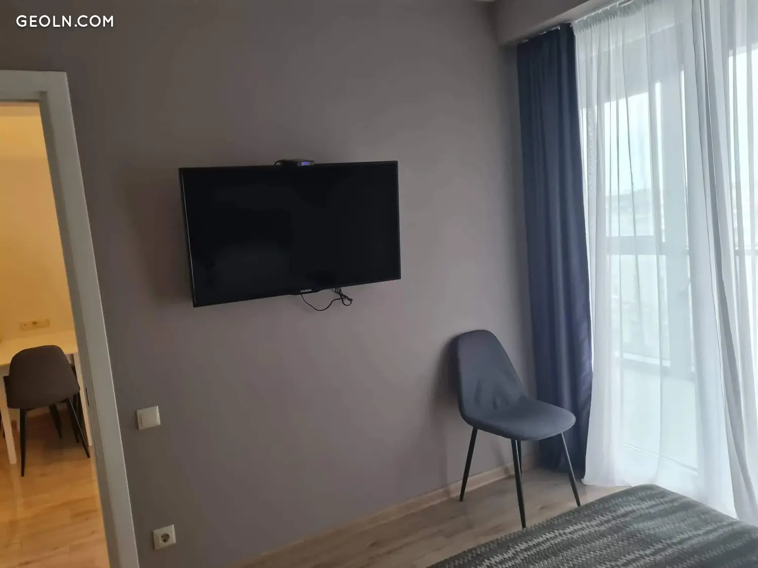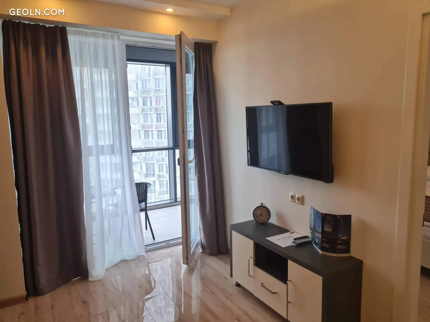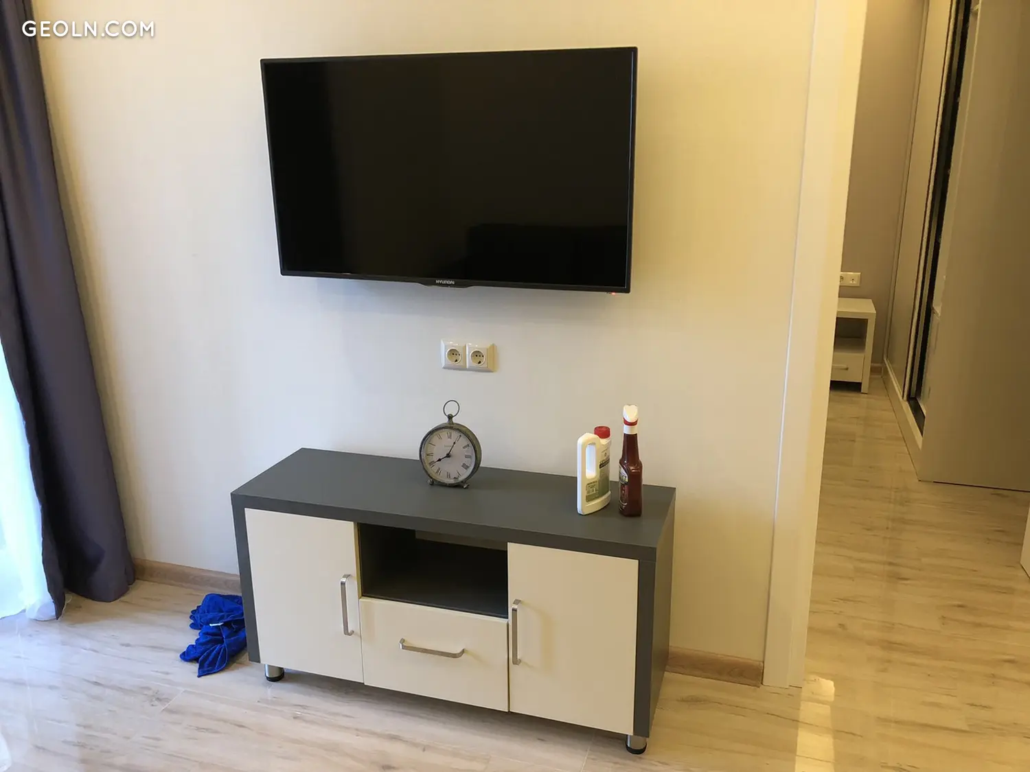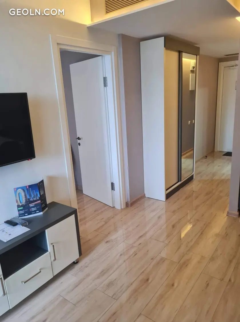 在阿里安斯宫出售酒店公寓,2间房,新的装修,位于司法一侧,不在另一侧,中间有玻璃阳台,家具,餐具,2台电视,冰箱,床上用品