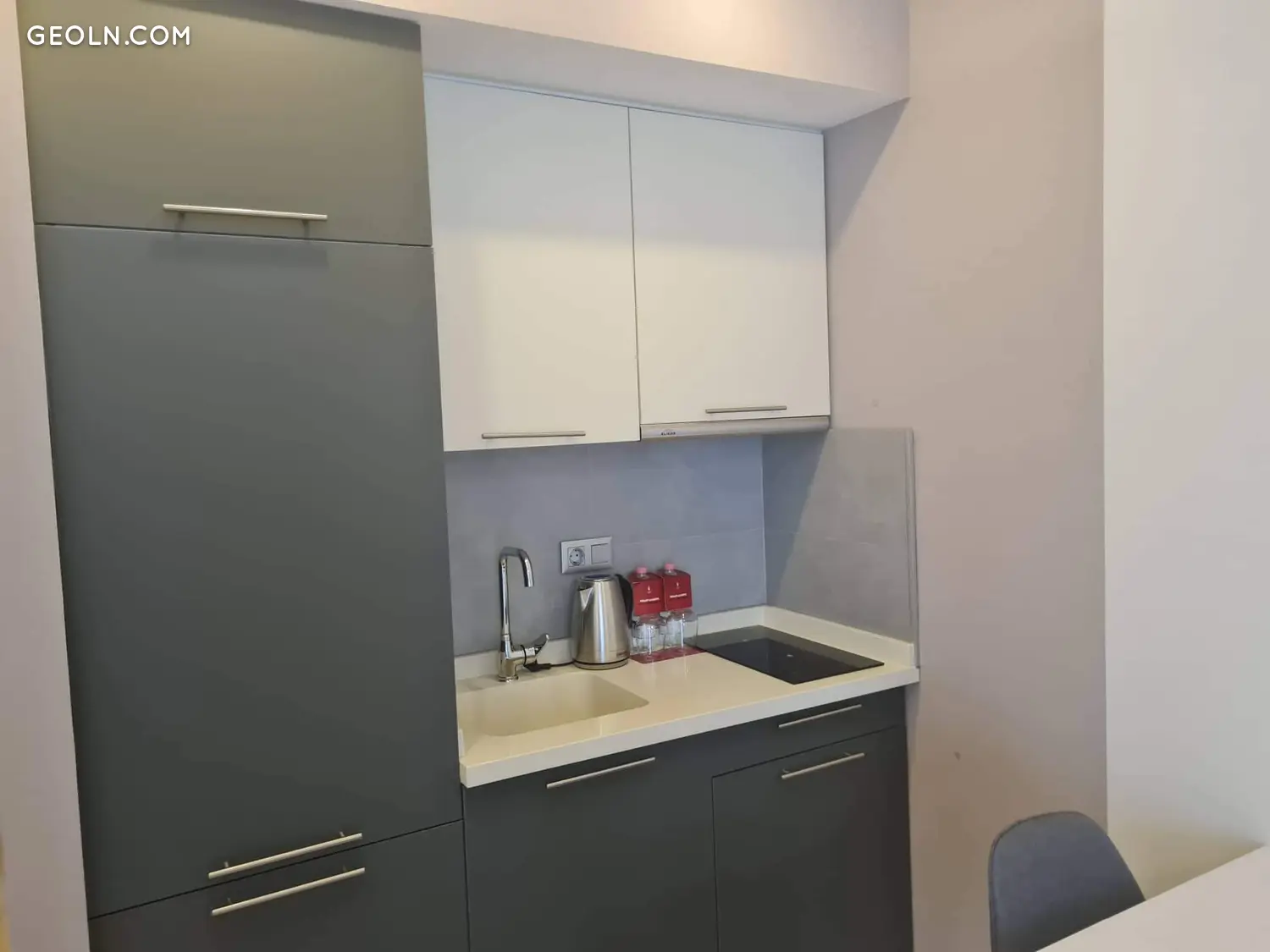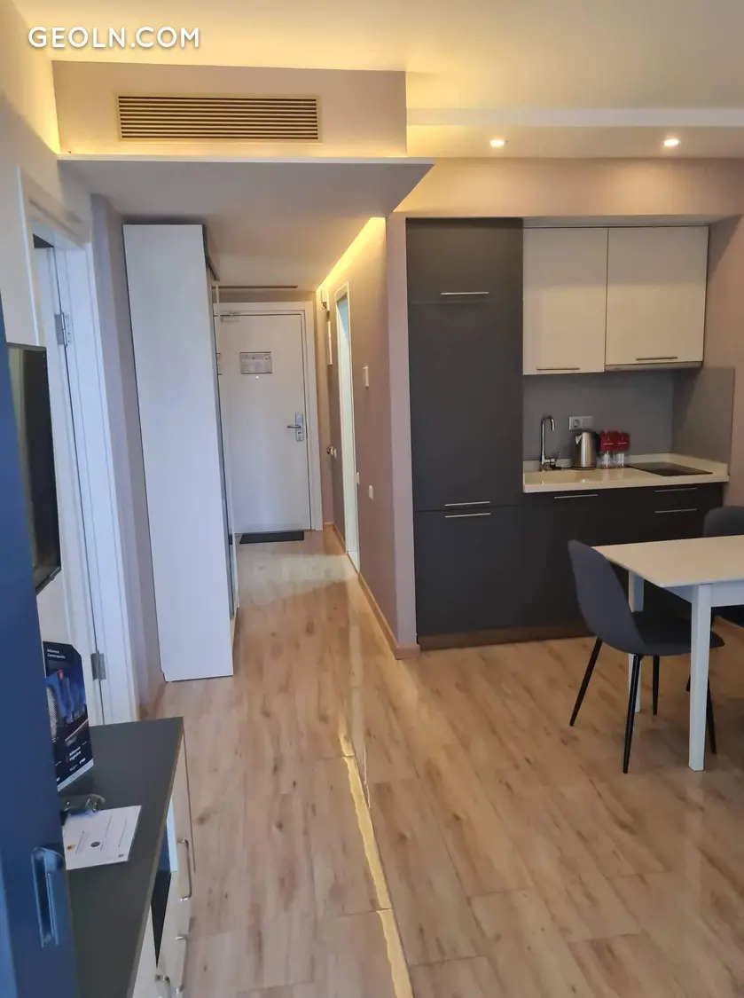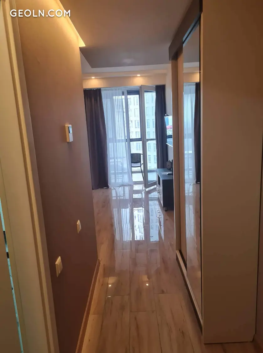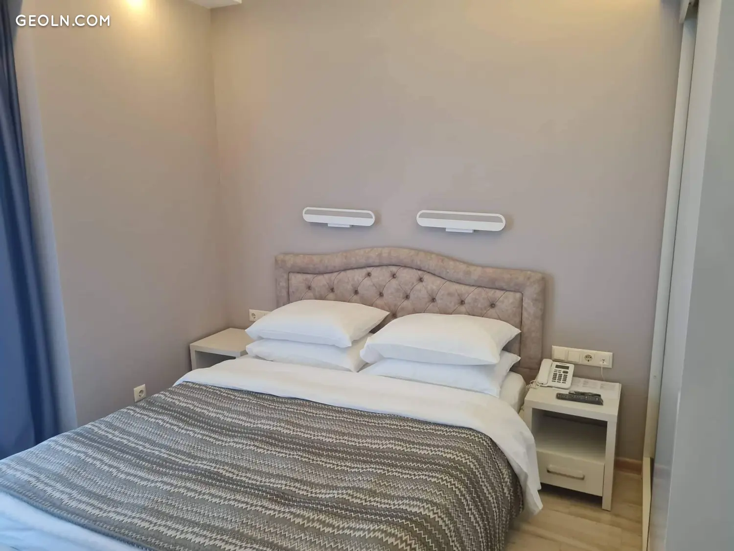 在阿里安斯宫出售酒店公寓,2间房,新的装修,位于司法一侧,不在另一侧,中间有玻璃阳台,家具,餐具,2台电视,冰箱,床上用品