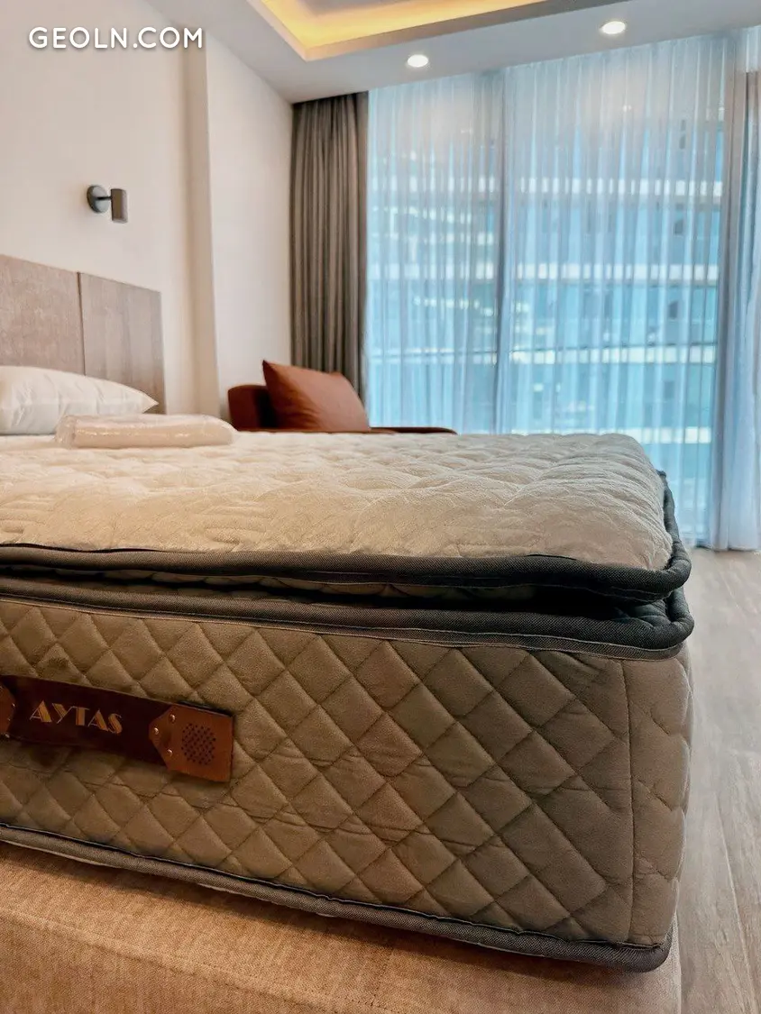 卧室区域的填充物和配件来自土耳其公司ATLAS YATAK,采用整形系统和抗过敏填充物。消除湿气滞留和霉菌形成 - 这对海边生活至关重要。