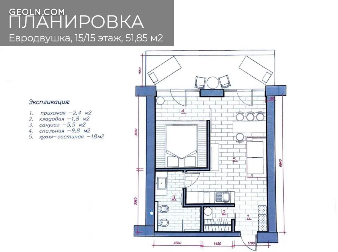 Сама квартира площадью 51,8 м², имеет удобную и продуманную планировку с большой и светлой кухней-гостиной, спальней с большим рабочим столом, вместительной гардеробной, большим санузлом и удобным балконом. А с 15 этажа открываются потрясающие виды на горы, смотрите фото.
