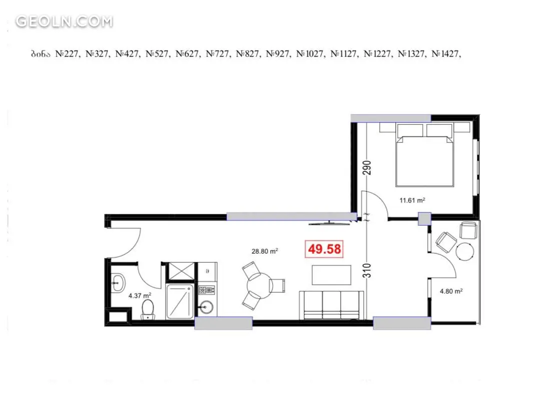 | 面积 | — м2 |