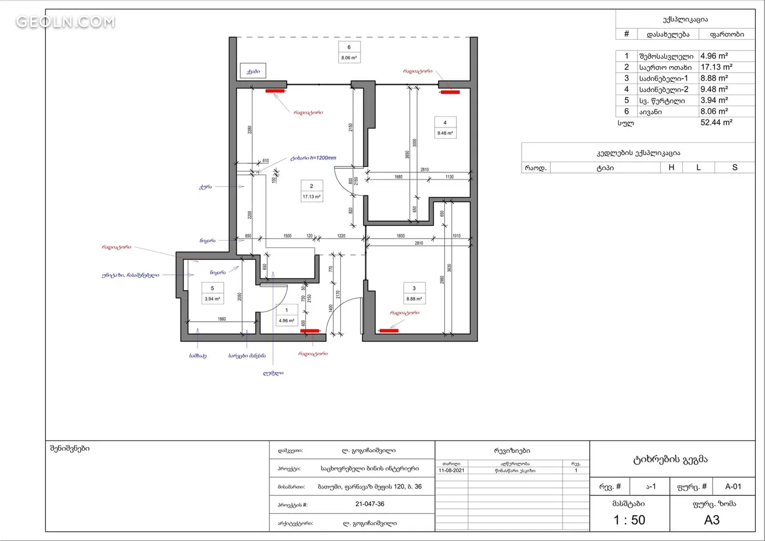 | 面积 | 52.44 м2 |