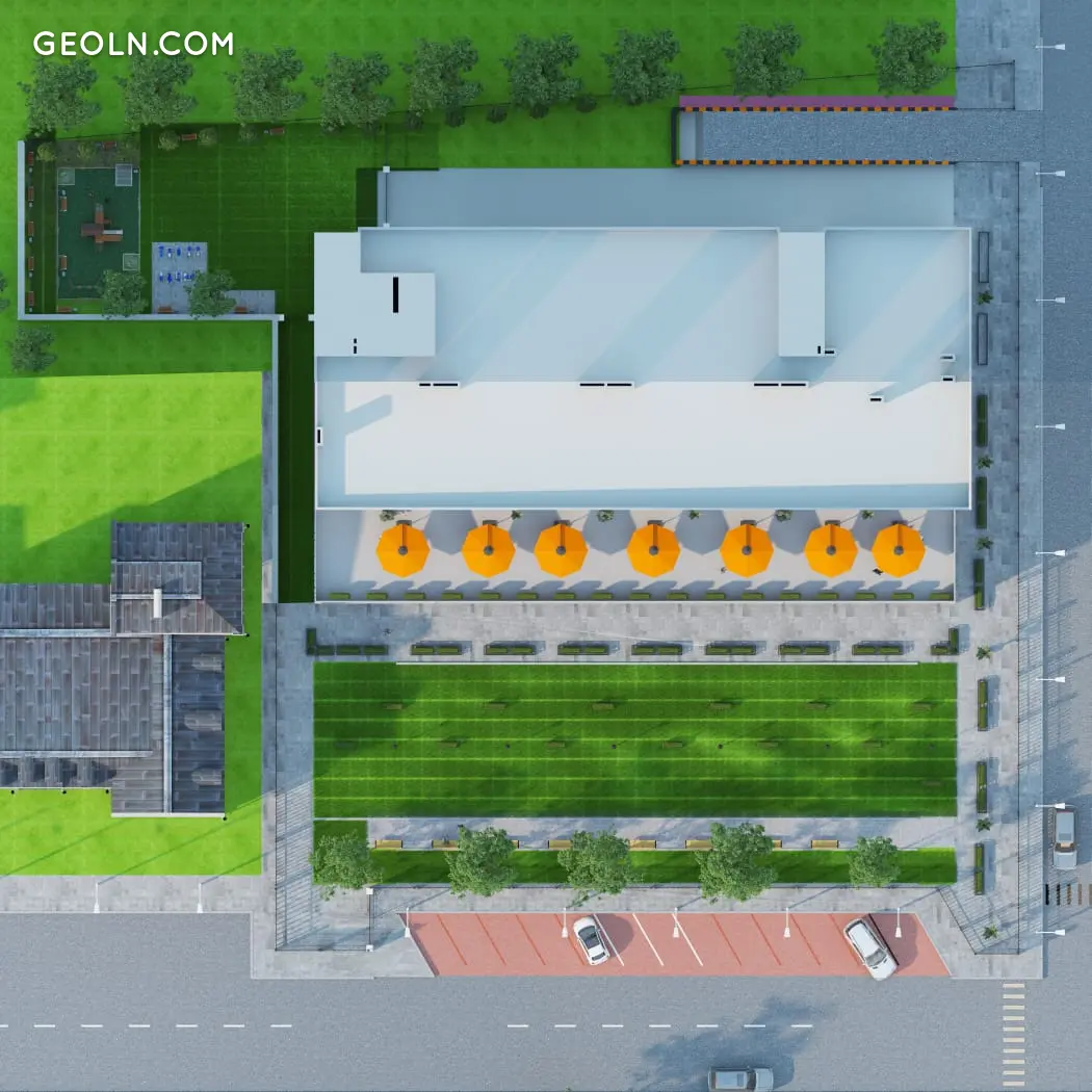 该综合体提供:接待、保安和视频监控、景观屋顶露台、1500 平方米的绿色庭院和游乐场、可停放 70 辆汽车的地下和地上停车场、健身中心中心、超市、咖啡馆和药店。