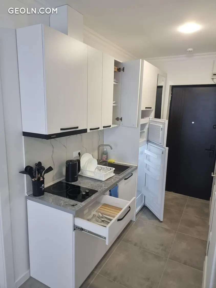 热水、洗衣机、设备齐全的厨房(炉灶、冰箱、餐具、咖啡机)、衣柜和橱柜,位于18层楼房的15层有一个美丽的阳台。