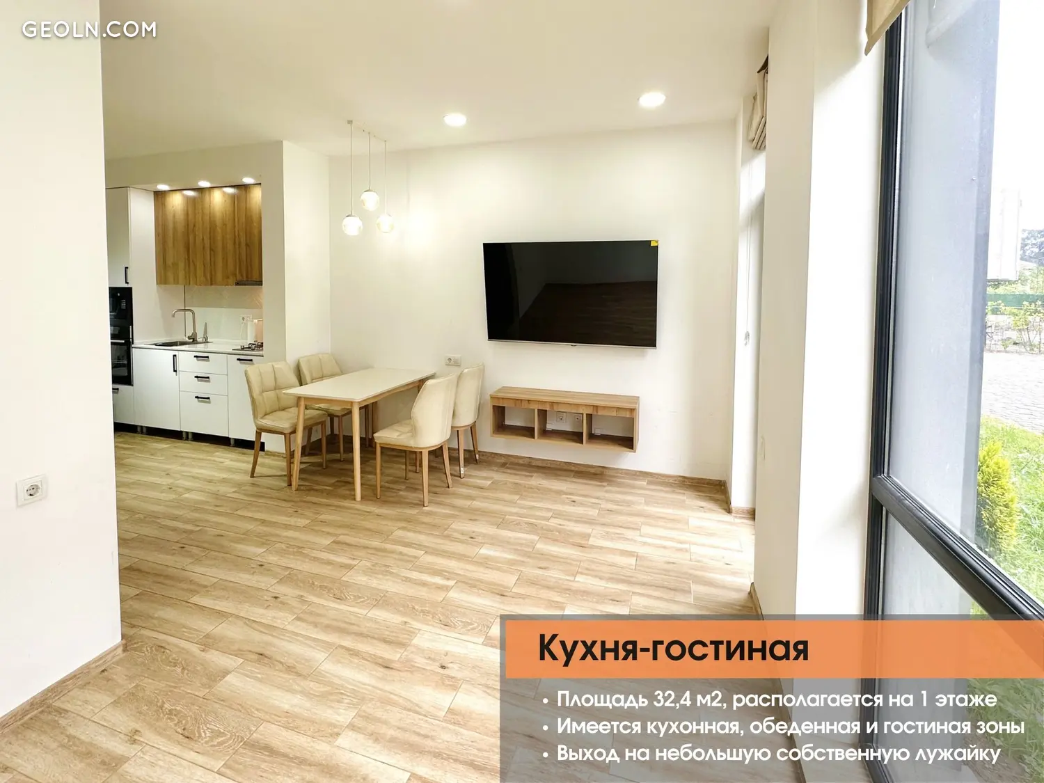 3层联排别墅,面积111.4平方米,包括:32.4平方米的厨房-客厅、3间卧室、2间浴室和17.1平方米的大露台,以及自己的庭院在那里你可以组织一个休闲区。