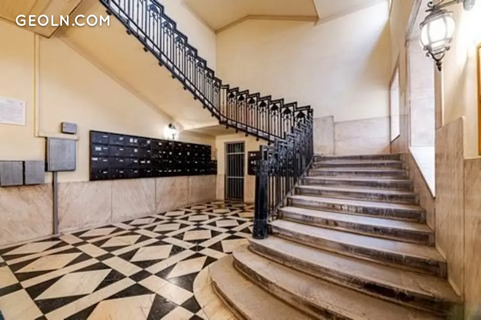 Квартира расположена на 5-м и верхнем этаже красивого исторического углового дома в стиле модерн с лифтом.