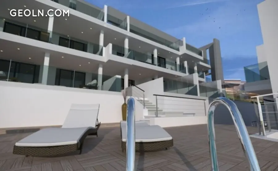 该建筑群距离大海仅 700 米,采用现代风格建造,具有许多创新之处,但仍与当地传统建筑完美融合。得益于大型落地窗和宽敞的露台,每间公寓都充满了阳光,业主可以坐在舒适的椅子上欣赏美景。