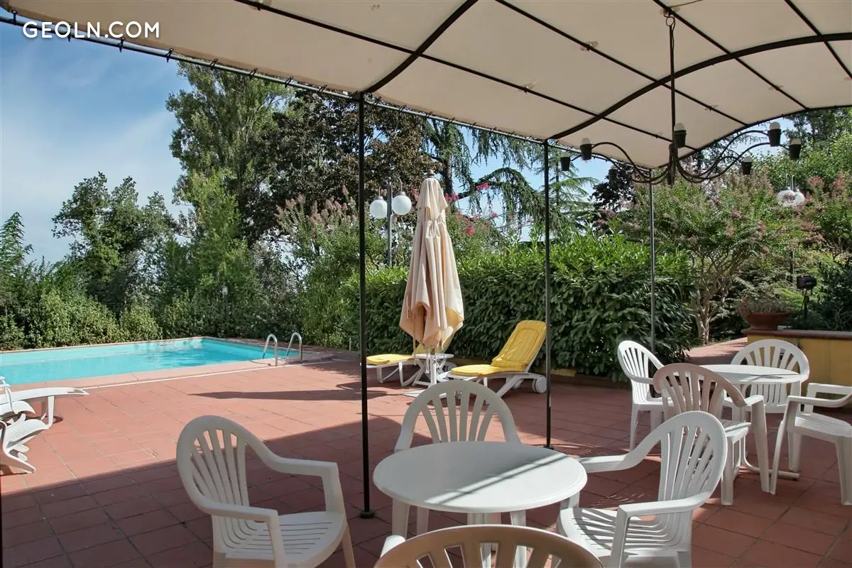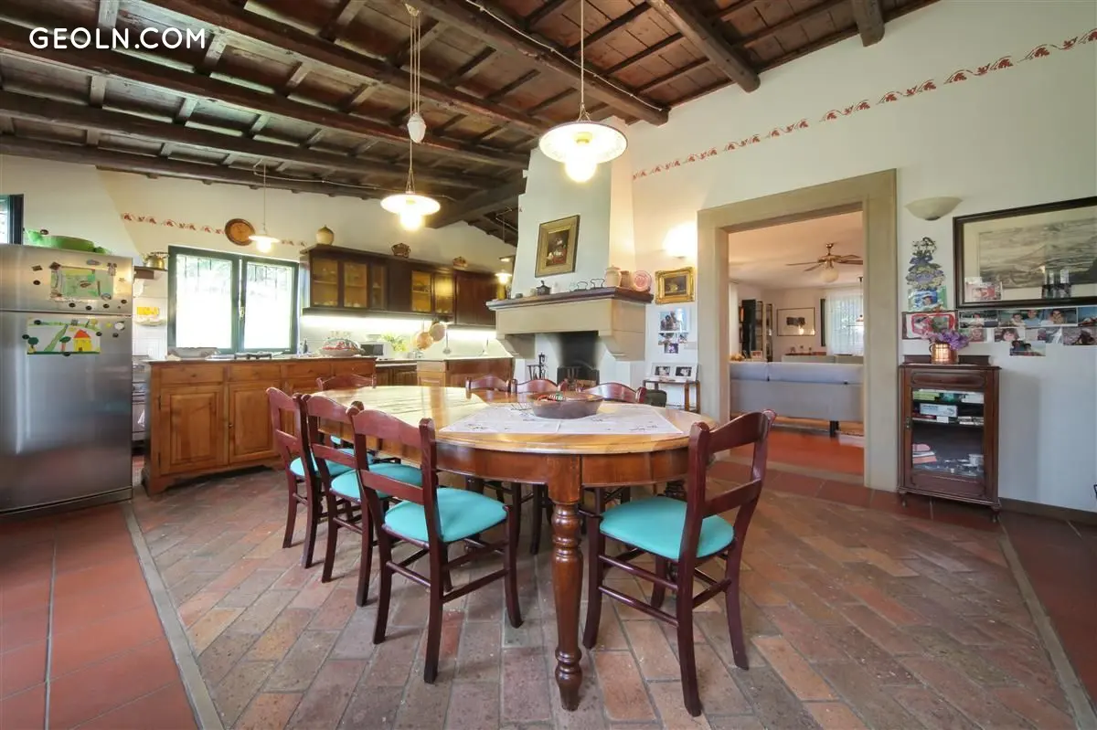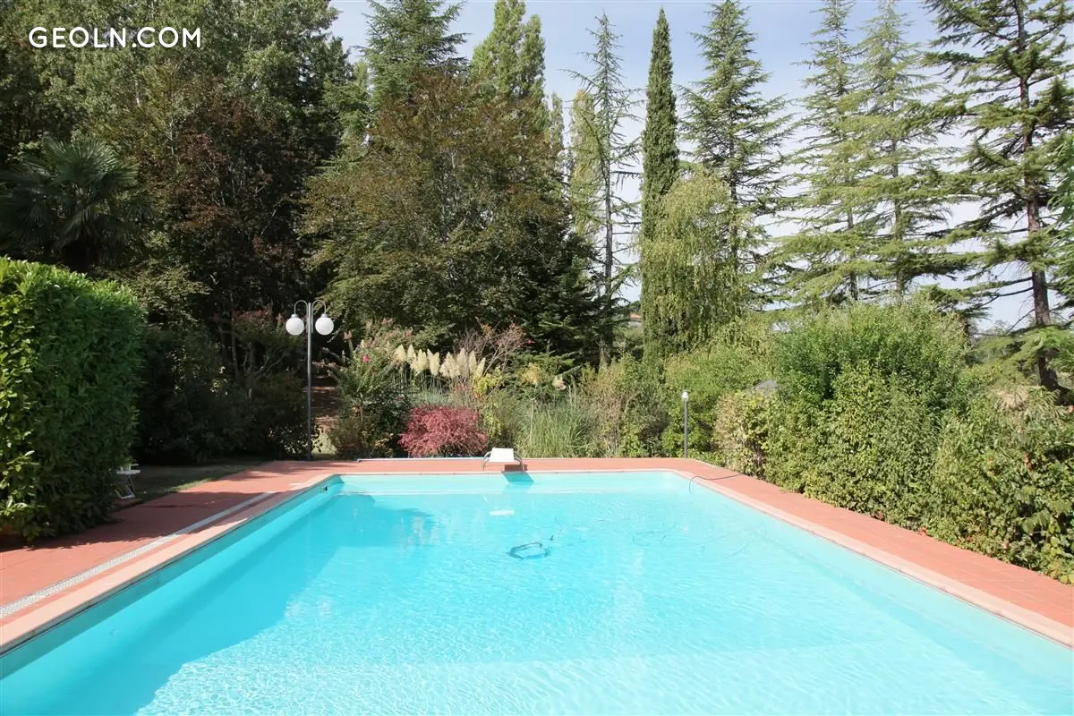 在温暖的季节,房子周围有许多不同的地方可以放松并在户外度过美好的时光:厨房对面的阳台、锻铁凉亭、靠近大型游泳池 (13 x 6 m) 的户外日光浴区和位于主入口。别墅的领土完全被围起来,周围是一个面积7000多平方米的公园,里面种满了美丽的树木。