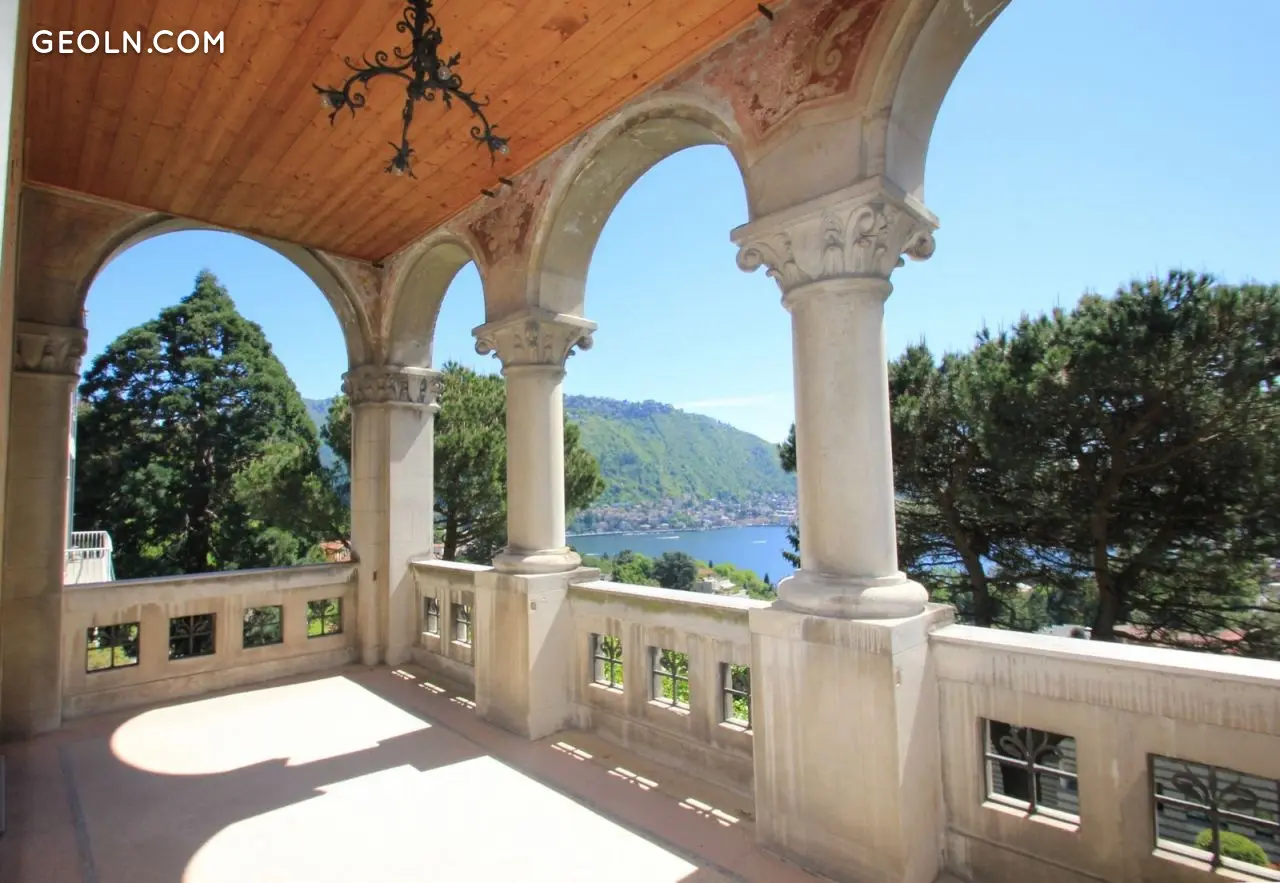 Комо, прекрасная вилла в стиле Либерти в престижном районе, с потрясающим видом на город и озеро Комо, в окружении хорошо ухоженного сада с вековыми деревьями. Расположена в тихом месте вдали от городской суеты, но также близко к центру города, всего в 10 минутах ходьбы или 5 на автобусе. Не смотря на возраст виллы, в ней были сохранены многие архитектурные свойства: оригинальные граффити на стенах и фасадах, мозаичные полы. Большая терраса на гостиной и террасы на спальном районе. На первом этаже расположена дневная зона с просторной верандой, а на втором этаже ночная зона с 4 спальнями, плюс чердачный этаж с подсобными помещениями. Удобный подъездной путь, гараж.