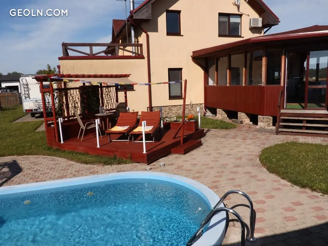 颗粒供暖、生物污水处理系统、2 间浴室、2 个车库、第二盏灯、大阳台(53 平方米)、宽敞的阳台(44 平方米)、带休息区的景观区、加热、来自锅炉、游泳池(深度 1、5m)。 5个房间。