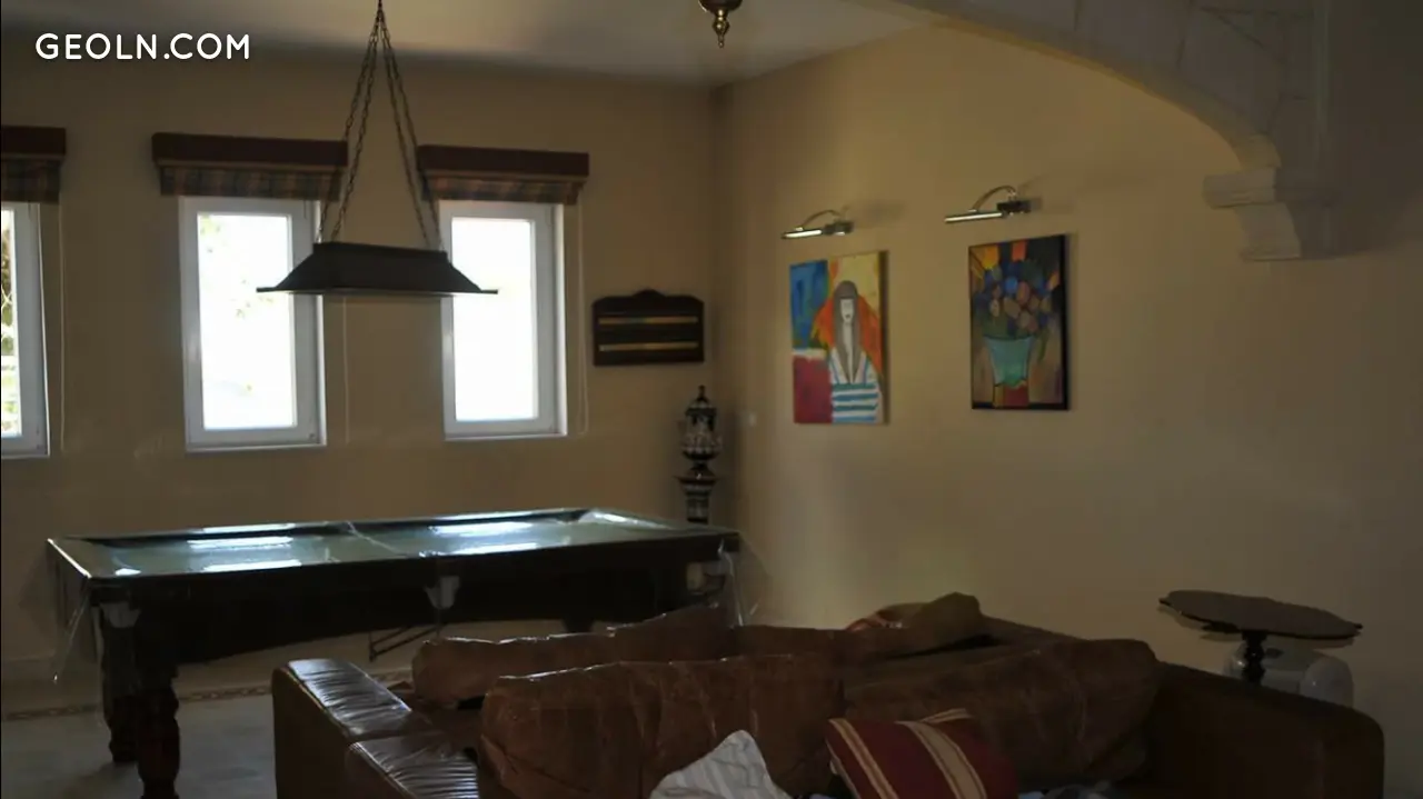 Недвижимость была оформлена по дизайн-проекту, оборудована в соответствии с высокими стандартами энергоэффективности и имеет мраморные полы, систему сигнализации, теплые полы, большой камин, качественные пластиковые окна и многое другое.
