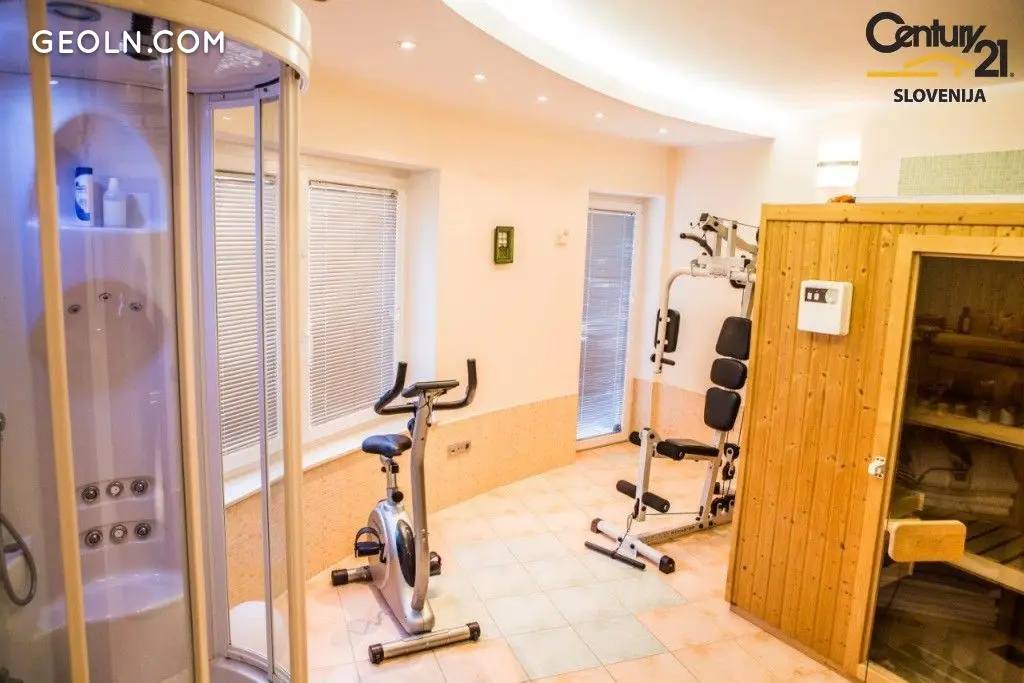 - 在一楼,迎接我们的是一个宽敞的入口大厅,通往一个布置优雅的带壁炉的客厅。再往前是一个设备齐全的厨房和一个大用餐区。一条宽敞的走廊将我们引向 SPA 区——一个放松和休息的空间。在那里,我们会发现一个带有 Kolpa-San 按摩室的“芬兰”桑拿浴室、一个设备齐全的健身室和一个 Höesch 按摩浴缸。在放松和娱乐的房间附近,有一个葡萄酒馆,配备了专门的葡萄酒冰箱。