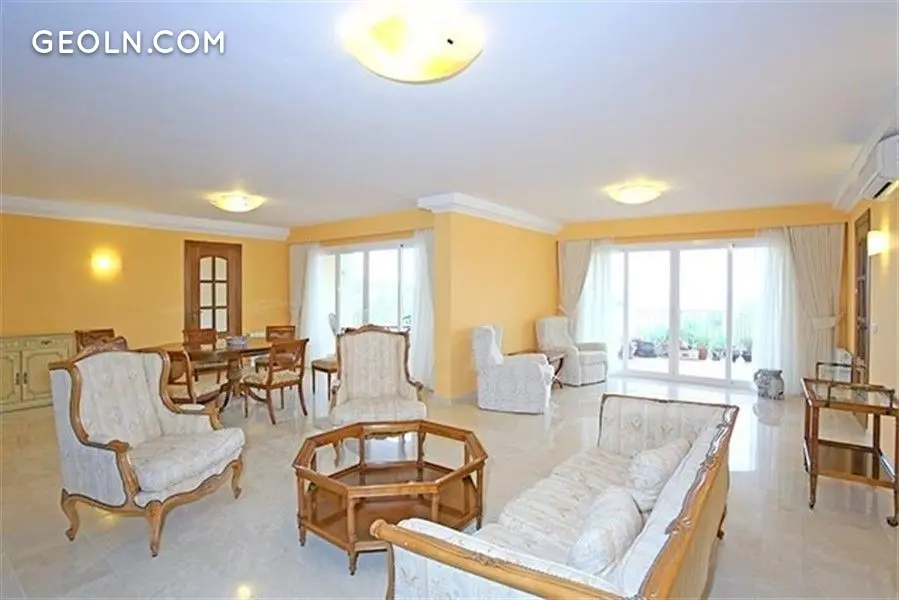 Апартаменты на первой линии с видом на море и всего в 100 метрах от пляжа с выходом в общий сад. Эти апартаменты изначально были двумя раздельными - одни с 2 спальнями и вторые с 3, нынешние владельцы объединили их в одни апартаменты с 5 спальнями. Апартаменты после ремонта и состоят из: прихожей, просторной гостиной, оборудованной кухни, 5 спален с 5 ванными комнатами, огромной террасы на крыше, а также парковочного места. Во время ремонат были установлены новые кондиционеры, газовое отопление, гардеробы были сделаны на заказ, кухня с оборудованием Bosch, новые ванные комнаты, окна и двери, новый пол на террасе и полировка мраморных полов в квартире.