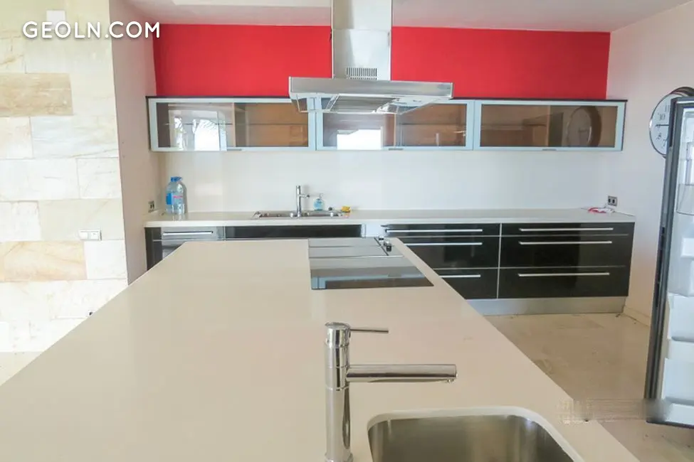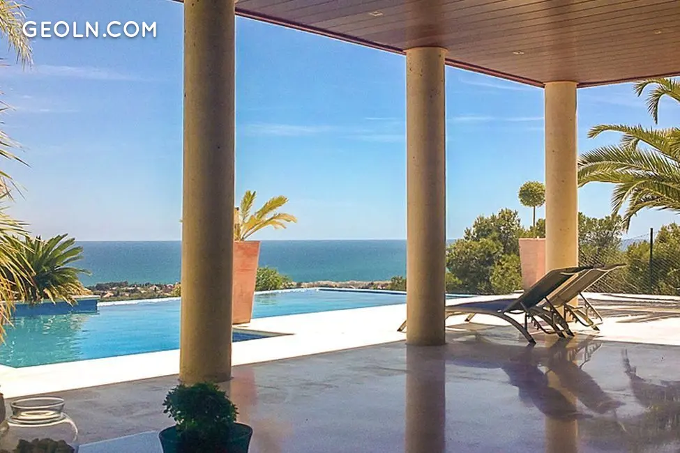 现代别墅设有大型彩色玻璃窗,享有美丽的海景,位于科马鲁加,距离巴塞罗那 60 公里。这座城市以其温泉而闻名,毗邻 5 * Le Meridien 酒店及其 SPA 中心、火车站和迷人的长沙滩。别墅享有壮丽的全景海景。地块1530平方米,房子约450平方米,池边有果园和针叶树。厨房 40 平方米,带壁炉的宽敞客厅,可通往游泳池,书房,4 间卧室,均设有自己的浴室,顶楼有一间 80 平方米的带卫生间的工作室。两辆车的车库。房子有地暖系统。别墅位于以金色沙滩而闻名的多拉达海岸。