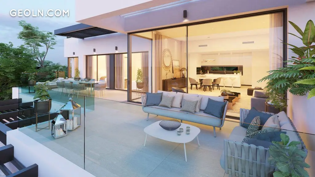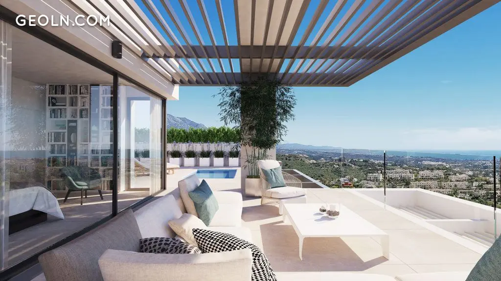 Aqualina Residences & Aqualina Collection 位于 Alborada,毗邻 La Quinta 高尔夫球场,是令人印象深刻的公寓和顶层公寓的独家开发项目,拥有两间、三间和四间卧室,可欣赏壮丽的全景。 由于其位于贝纳哈维斯山和南侧的较高位置,可欣赏到海景。项目将于2021年投产 该项目的开发商只使用了最好的材料和最新的技术,创造了该地区最独特的综合体之一。位于太阳海岸最令人向往的地区之一的豪华现代公寓,设有宽敞的露台,四周环绕着宁静的地中海花园,提供私密性。 基础和结构均按照现行标准用钢筋混凝土建造。 房子的外立面是半砖墙,上面覆盖着实心砂浆或铝(取决于面积),以及带有工程聚氨酯泡沫绝缘材料的空心墙。内墙将用干墙绝缘。技术屋顶配备了空气热系统的外部空调装置和不可穿透的屋顶平面饰面,具有隔热和防碎石保护。铝饰面,带隔热功能。所有外部门窗(滑动或倾斜转动,视情况而定)具有隔热铝饰面和漆面、双层玻璃和太阳能热控制。