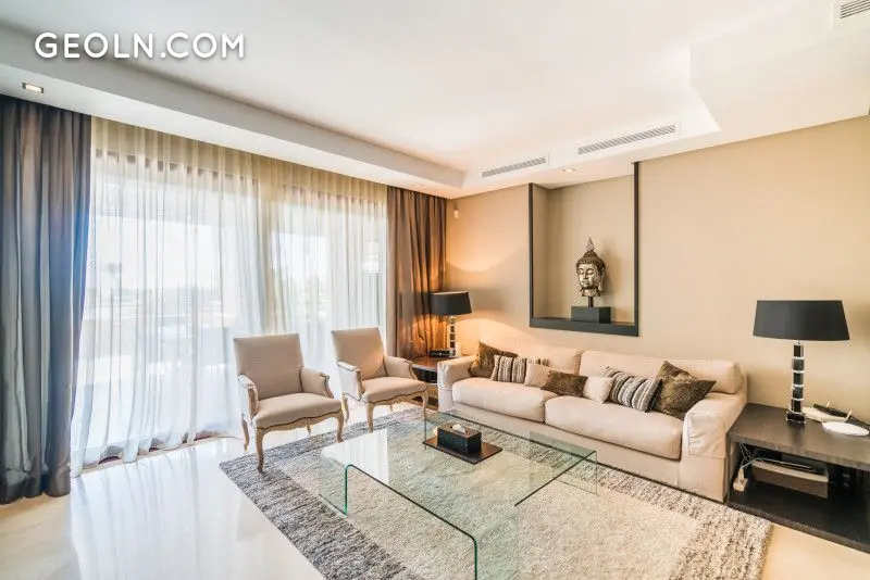 最好的材料被用来建造和完成这些公寓。现代化的厨房、洗衣房和浴室设备、冷热空调、集成音响系统、“Smart om”,一个漂亮的壁炉,加热的光滑大理石地板。室内设计师在时尚家居的美观、功能和个性之间取得了平衡。令人惊叹的室内设计,清晰的形状和轮廓,高贵的自然色彩,令人印象深刻的建筑细节,时尚舒适的经典现代家具,时尚的装饰和装饰。出色的灯光说明了无可挑剔的品味和对经典舒适、新理念和高科技的承诺。