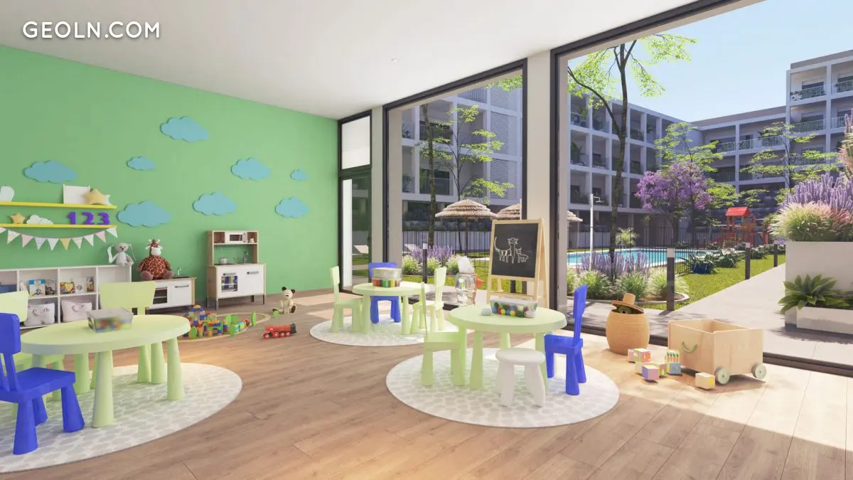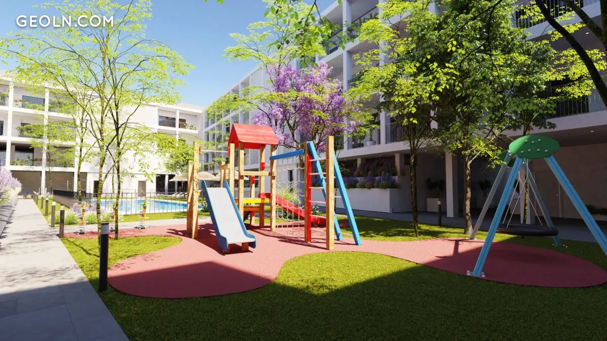 封闭式住宅区,设有景观区、公共游泳池、儿童游乐场和健身房。带 2、3 和 4 间卧室的公寓,将提供设备齐全的厨房和电器,将呈现高品质和出色的设计。他们的面积为82平方米到147平方米。
