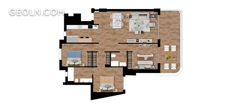 有带 2 间和 3 间卧室的公寓,以及将两间公寓组合成 4 或 5 间卧室的宽敞房屋的可能性.
