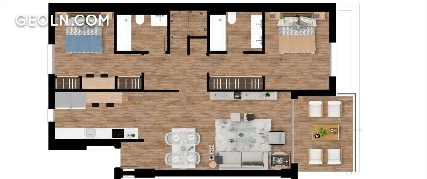 可欣赏 La Marina de Sotogrande 壮丽景色的露台公寓 带游泳池和社区花园的私人住宅社区 可以将两栋房屋合并为 4 间卧室 符合欧洲建筑标准的高品质设计师饰面。 太阳能、隔热和隔音、自然通风系统、B 能源认证 面向东南的前露台 价格中包含私人车库和储藏室