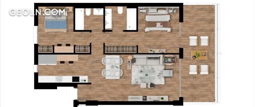 Pier 2 提供 2 居室和 3 居室公寓,并可选择将两间公寓改造成带大起居区的宽敞 4 居室住宅。